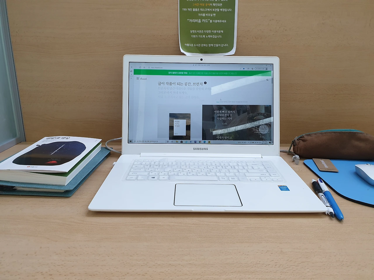 책에 집중하고 싶을 때는 열람실을 가고 노트북도 사용하고 싶을 땐 자료실을 찾는다. 노트북실은 경쟁이 치열하다. 한 번은 오전 9시 반에 대기 1번을 걸어놨는데 저녁 6시 반에 배정이 가능하다는 문자가 왔다. 그날만 그런 게 아니라 이후에도 두 번이나 그랬다(심지어 주말에도...). 지금은 노트북실은 아예 마음을 비웠다.