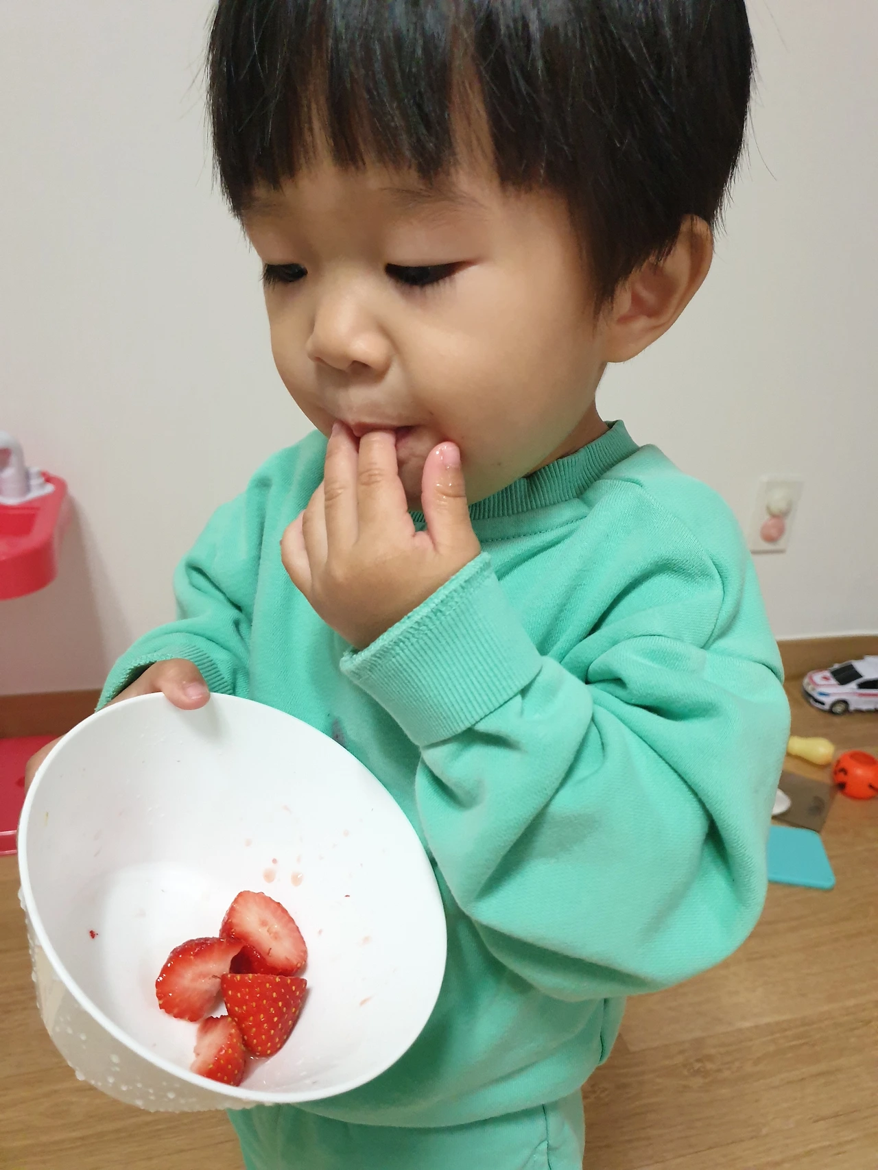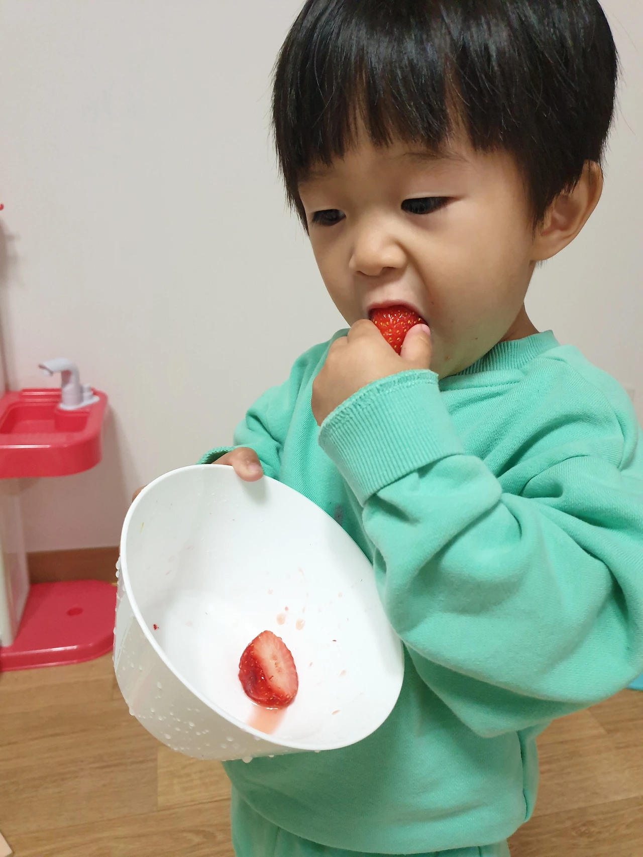 할 수 없이 집에 들어가려던 계획을 변경해 동네 마트로 들어갔다. 이것저것 필요한 걸 주워 들고서 마지막으로 과일이 있는 쪽으로 갔다. 호야가 좋아하는 청포도를 사려는데 예전보다 가격이 올라 한 팩에 8000원이었다. 고개를 돌려보니 딸기가 가격이 조금 내려 한 팩에 9000원이다. 한 팩에 9000원짜리 딸기는 예전 같으면 비싸서 사지 않았을 텐데, 호야가 좋아하는 과일이다 보니 고민이 됐다.맛있게 먹을 모습이 눈에 선했다.