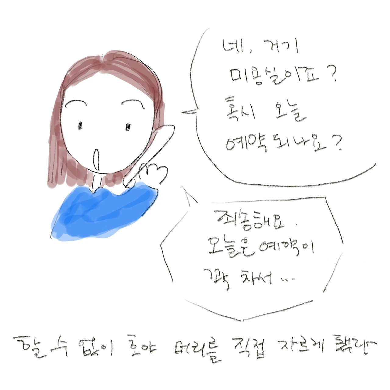 "죄송한데 오늘은 안 될 것 같아요. 예약이 꽉 차서요."