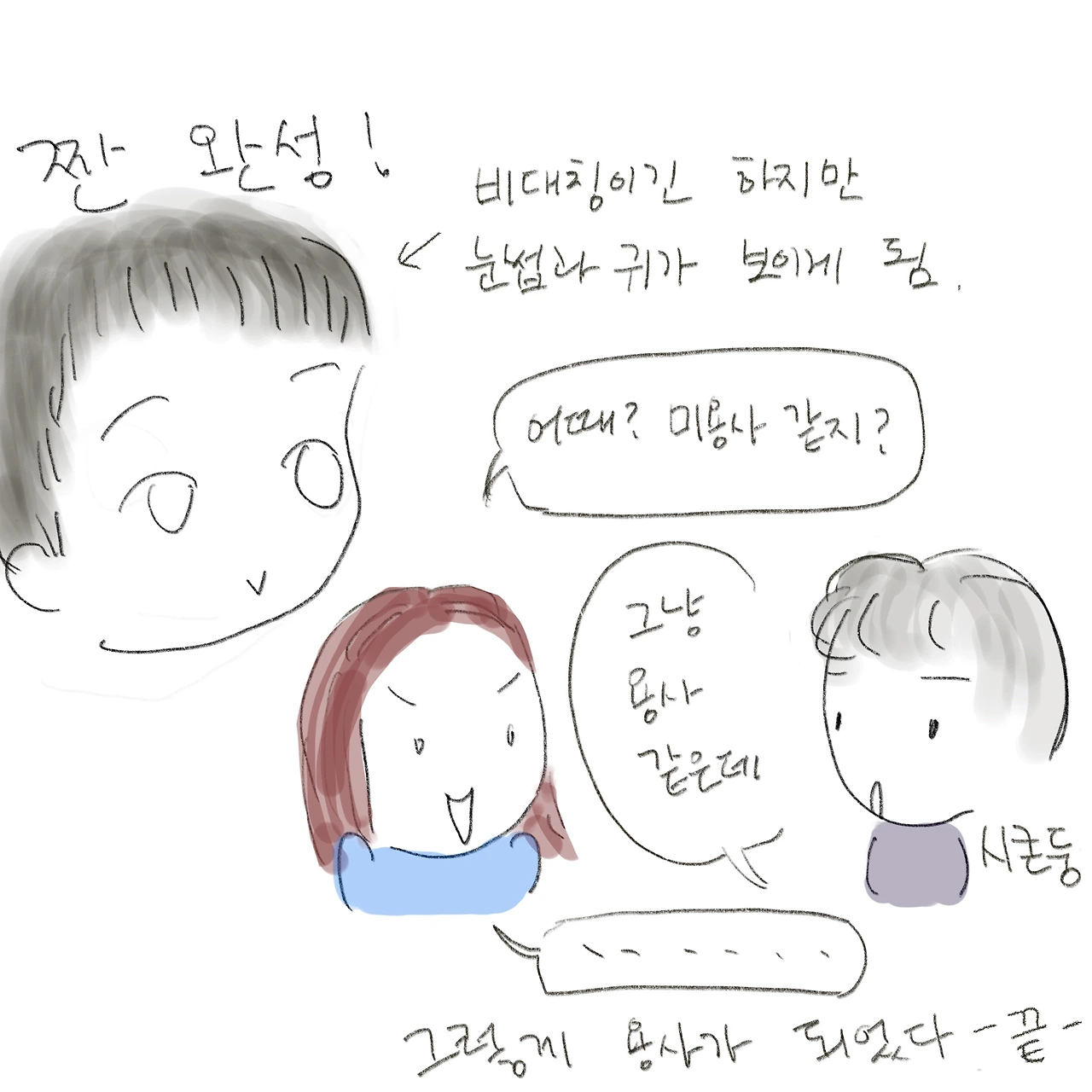 짐짓 의기양양해진 나는 바닥에 흩어진 머리카락을 청소기로 치우는 남편에게 말했다.