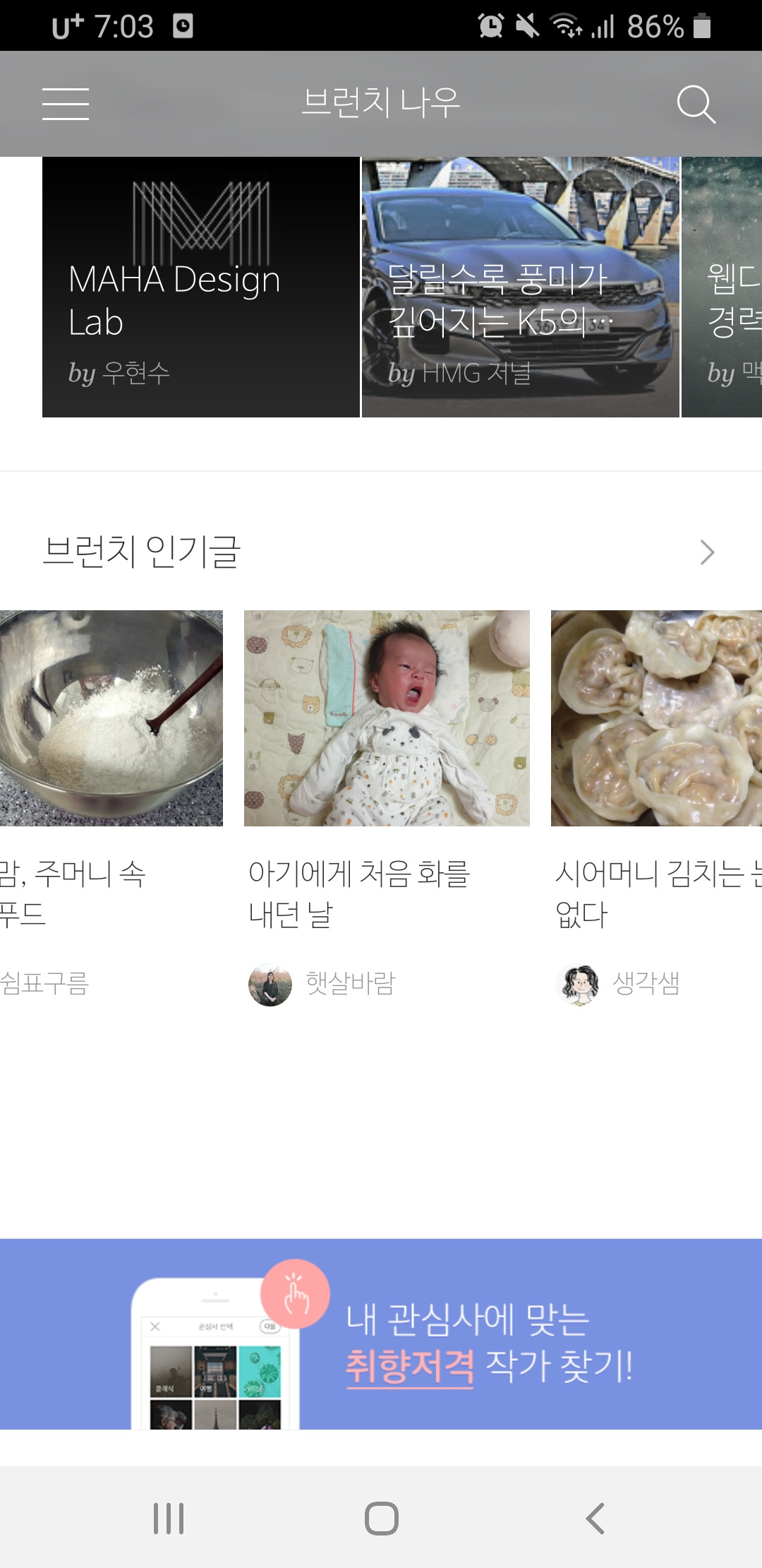 브런치를 시작한 지 얼마 안 됐을 때, 내 글이 브런치 메인이나 다음 등에 노출된 적이 제법 많았다. 첫 글이 카카오톡 뉴스 탭(지금은 카카오 뷰 탭이 됐다)에 올라갔고, 첫 브런치 북이 브런치 홈 화면에 올라갔었다. 그 외에도 세어보진 않았지만 많은 글이 노출이 됐다.