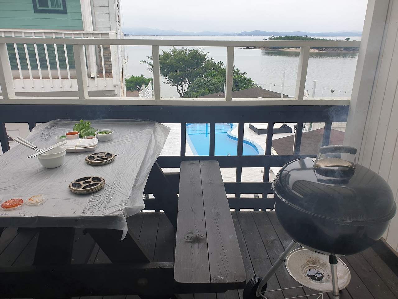 남편과 나는 심사숙고한 끝에 안면도에 있는 펜션에 다녀오기로 했다. 집에서 2시간 거리에 바다도 보이고 테라스도 있는, 위의 세 가지 조건을 모두 충족시키는 곳이었다. 숙소에 계속 있다가 저녁에 테라스에서 바비큐를 해 먹는 게 여행 계획의 전부였다.
