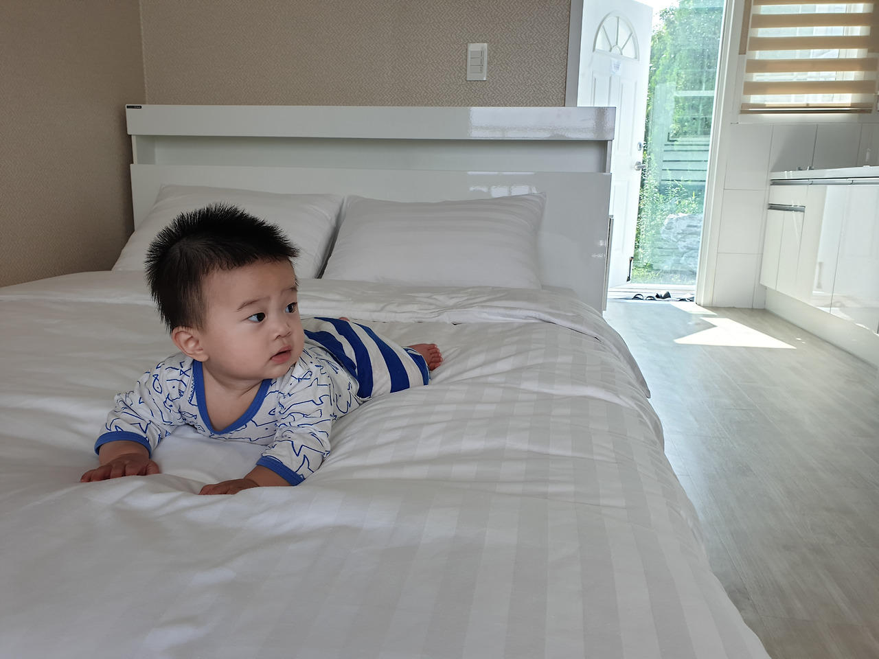아기를 바닥에 내려놓을 수도 없고 침대에 두자니 사방팔방으로 기어 다니는 아기가 떨어지지 않도록 옆에서 누군가 한 명은 계속 지켜줘야 했다.