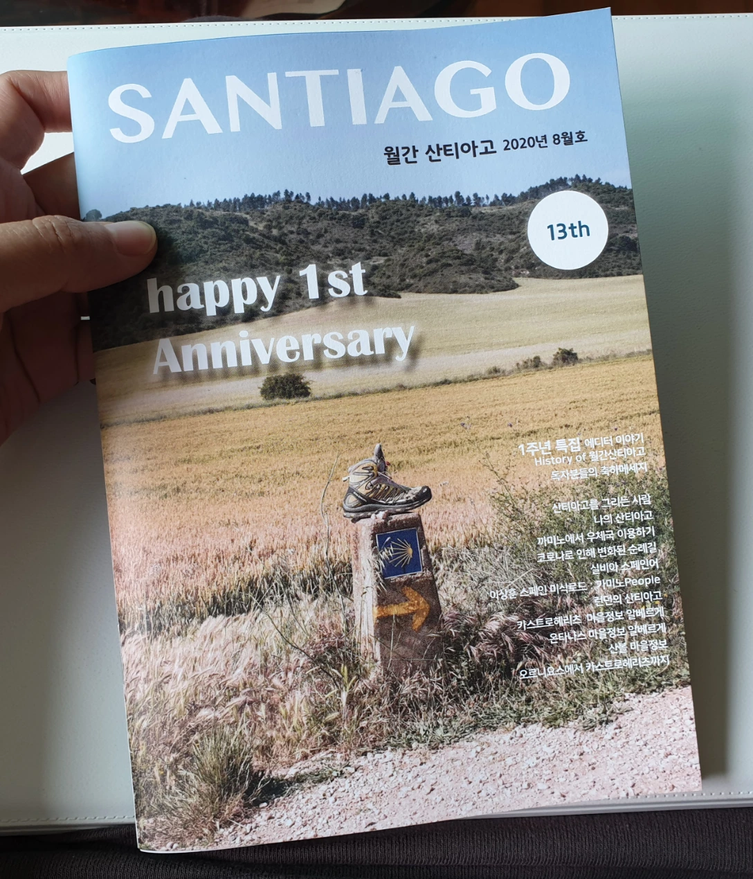 '월간 산티아고'라는 산티아고 전문 잡지가 있다는 걸 올해 초에 알게 됐다. 작년 8월에 창간한, 20페이지 정도 되는 작은 잡지였다(잡지관련링크). 분량은 많지 않지만 순례길 정보와 순례자들의 에세이를 읽는 재미가 제법 쏠쏠해 일부러 창간호부터 챙겨서 구독하고 있다. 산티아고를 추억할 수 있어서 좋고, 다음 순례길(언제가 될지는 모르겠지만)을 준비하는데도 유용한 가이드가 되어줄 듯싶다.