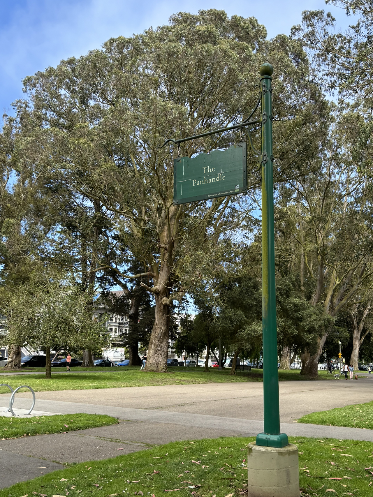 Ashbury 거리에서 내려오는데 또 공원이 보인다. The Pan Handle공원! 골든게이트 공원과 연결된 곳으로 마치 프라이팬 손잡이처럼 옆으로 길쭉하게 뻗은 모양을 따서 이름을 Pan Handle로 지었다. 재미있는 발상이다. 여유 있게 피크닉을 하는 젊은 가족들이 보인다. 그해 여름, 사랑과 평화의 함성이 무안해질 정도로 부와 여유가 느껴졌다.