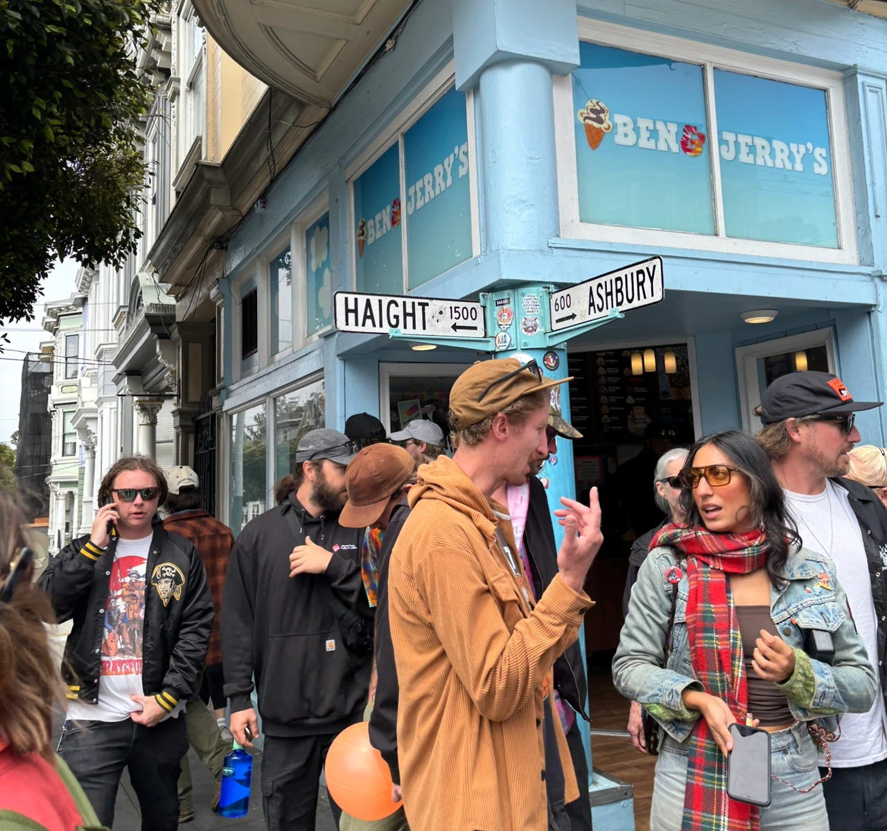공원을 지나 몇 블락을 걸어 Ashbury 거리에 도착했다. 이 동네 에너지도 심상치 않다. 여기도 역시, 축제 분위기! 1967년 Summer of Love를 방불케 할 정도로 히피들로 장사진을 이루었다. 알고 보니, 이번 주말에 Grateful Dead 밴드 창립 60주년을 기념하는 공연이 골드게이트 파크에서 열려 그해 여름처럼 전국에서 사람들이 모여들었다고 했다. Grateful Dead 밴드는 히피 문화의 또 다른 상징이라고 할 정도로 영향력이 대단했다.
