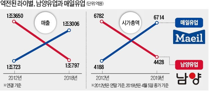 2013년 남양유업의 '대리접 갑질'이후 명성을 회복하지 못한 결과 출처: https://www.hankyung.com/economy/article/201904079260