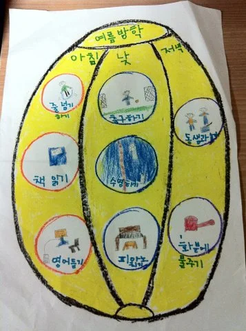 위 그림은 첫째 아이(초등2학년/남)가 그림 여름방학 계획표입니다. 저는 이 그림을 보고 "준경아, 럭비공이야? 여름방학 계획표를 이렇게 그리냐?" 라고 했지요. "아빠, 이거 참외야. 여름에 내가 제일 좋아하는 것. 알잖야"