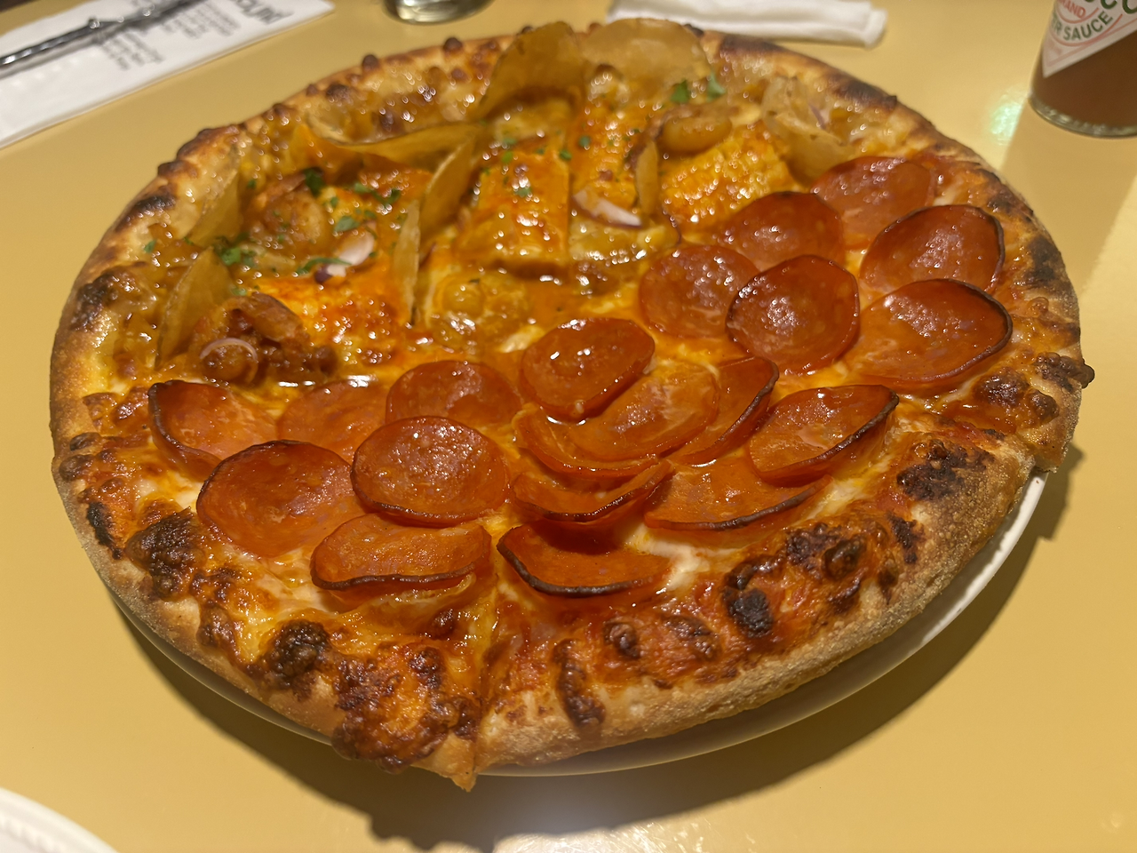 피자를 좋아하는 짝꿍을 위해 작은 식당을 예약했다