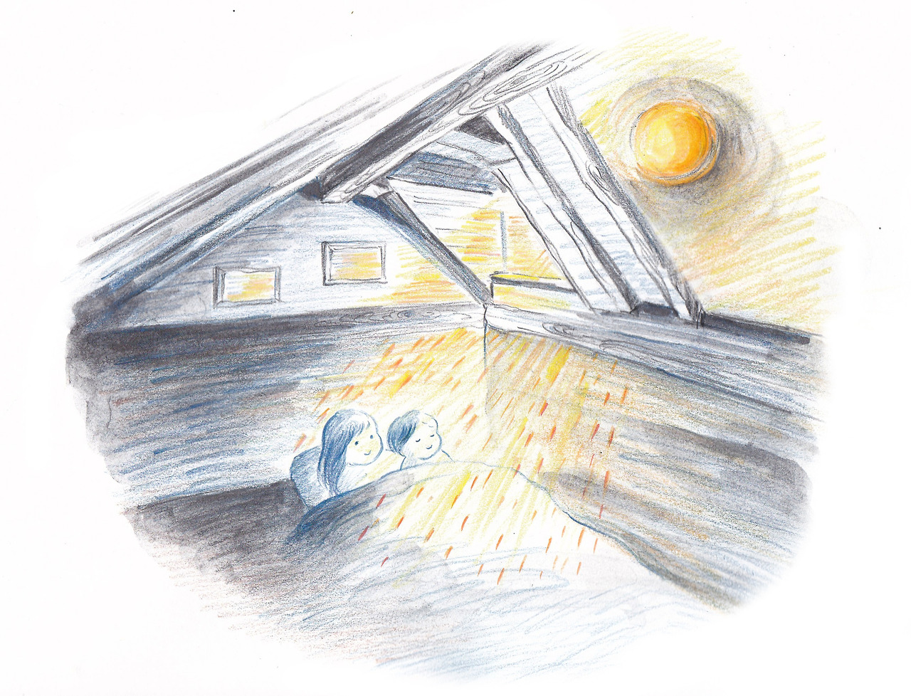구름을 벗어난 달과 눈이 마주친 순간 금가루 같은 빛이 작은 창으로 쏟아져 들어왔다.
