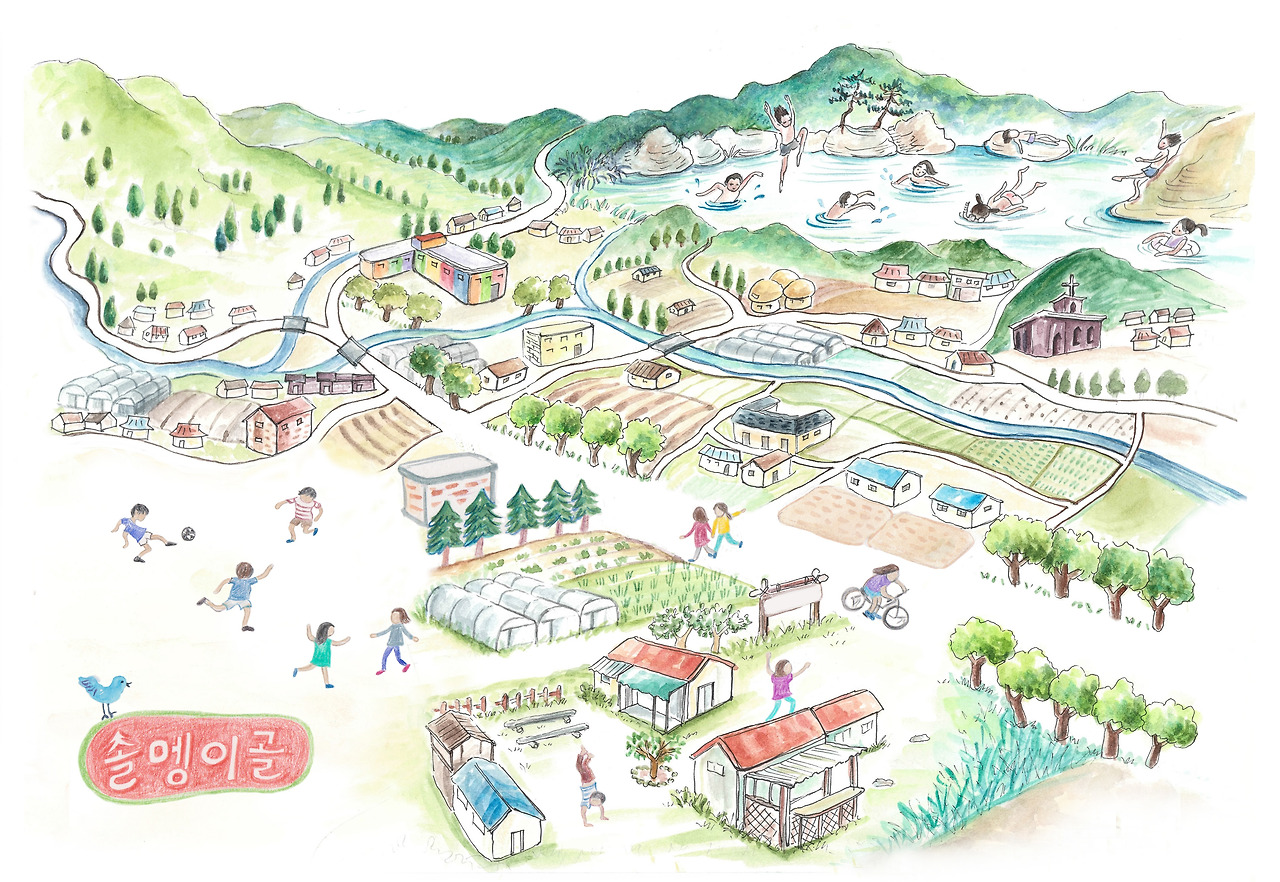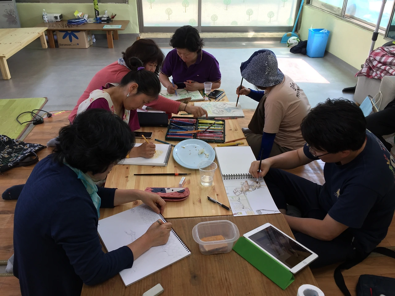 다행히 앞선 해에 마을사업으로 6개월간 드로잉 수업을 진행한 것이 도움이 되었다. 그림책 작가를 초빙해 책 만드는 과정에 대한 강연을 듣고, 충남 부여에 있는 송정 그림책 마을을 다 함께 견학하고 온 뒤부터 차츰 길이 보이기 시작했다. 그건 이 수업에 참가한 이웃들도 마찬가지였으리라.