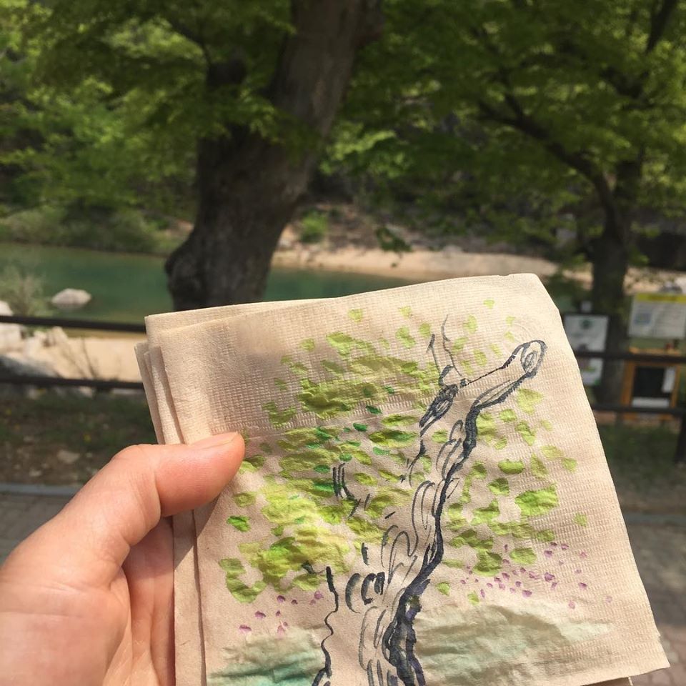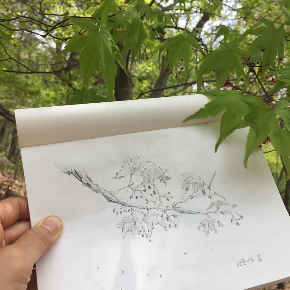 길을 걸으며 오월의 신록을 그림에 담아본다.