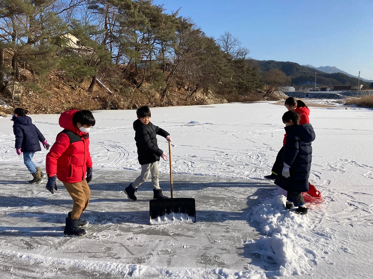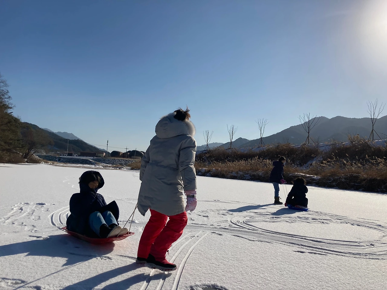 코 끝은 시린데 몸에선 기분 좋은 열이 피어났다. 내 안의 어린이가 툭 튀어나와 동네 아이들과 한바탕 뒹굴며 놀았다. 아무 걱정 없이 마음껏 웃을 수 있게 해 준 아이들의 힘이다. 언 강이 녹기 전에 한번 더 놀아야겠다. 그때는 불을 지펴 솥단지 걸어두고 어묵국을 한 솥 가득 끓이리라.