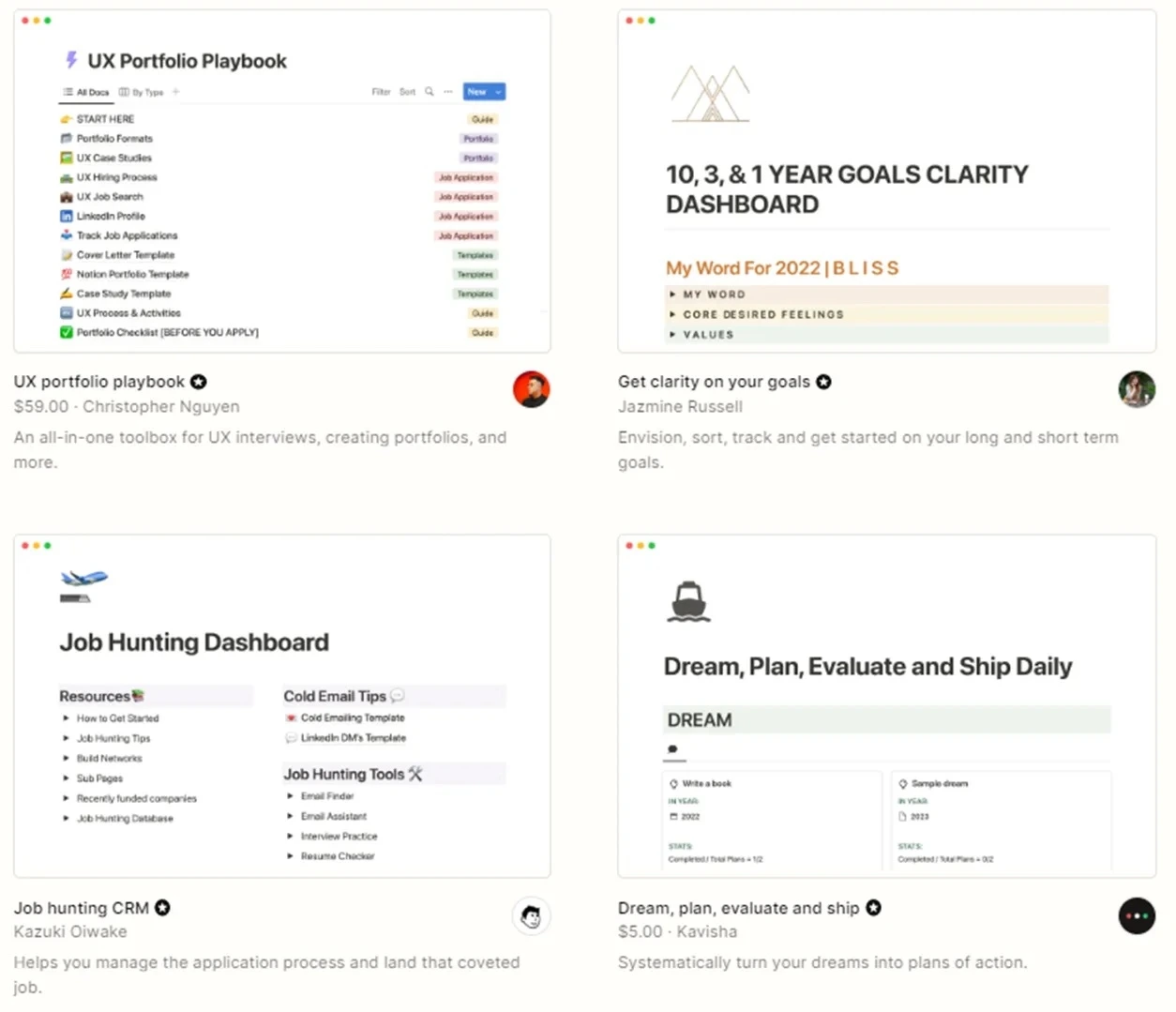 템플릿은 단순히 신규 사용자를 유치하는 데 그치지 않고 사용자가 빠르게 활성화되도록 도와주며, 사용자가 제품을 의도적으로 만든 것처럼 느낄 수 있도록 해줍니다. 또한 템플릿은 파워 유저로부터 템플릿을 소싱하는 커뮤니티 전략을 (예: 미로의 미로버스 ) 실행하거나, Notion처럼 사용자가 자신이 만든 템플릿으로 수익을 창출할 수 있도록 하는 방법도 될 수 있습니다.