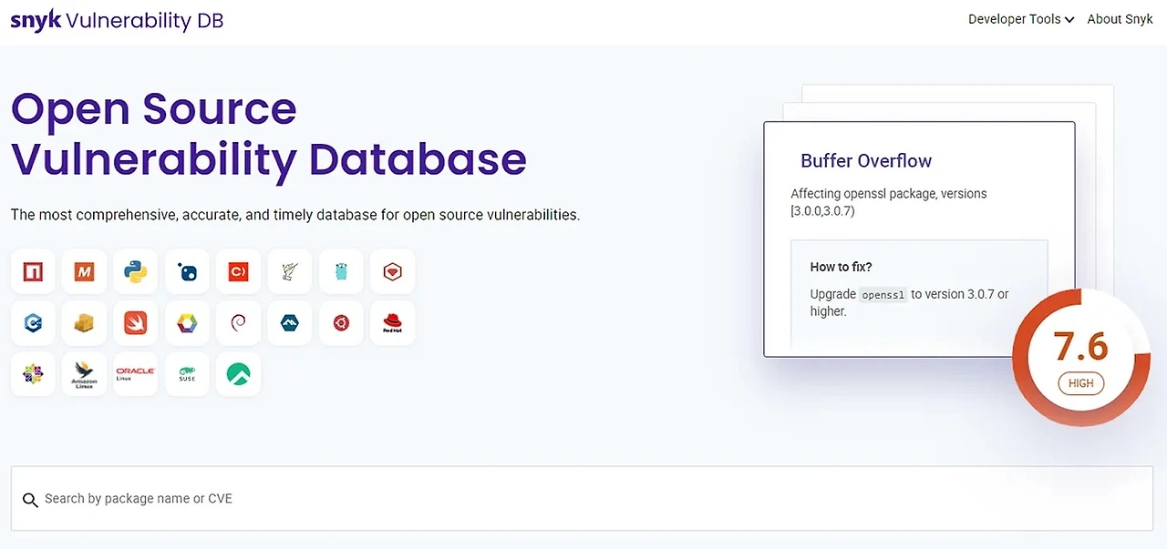 앱과 운영 체제 전반의 오픈 소스 취약성에 대한 포괄적인 데이터베이스입니다. 이 제품의 기반이 되는 풍부한 콘텐츠는 자연 검색에 노출되며 개발자의 워크플로에서 쉽게 발견할 수 있습니다. Snyk의 도구는 새로운 취약점이 발견되면 정기적으로 업데이트되어 사용자가 다시 방문할 이유를 제공하며, 방문자에게 새로운 취약점을 공개하도록 요청하여 사용자가 생성한 콘텐츠를 통합합니다.
