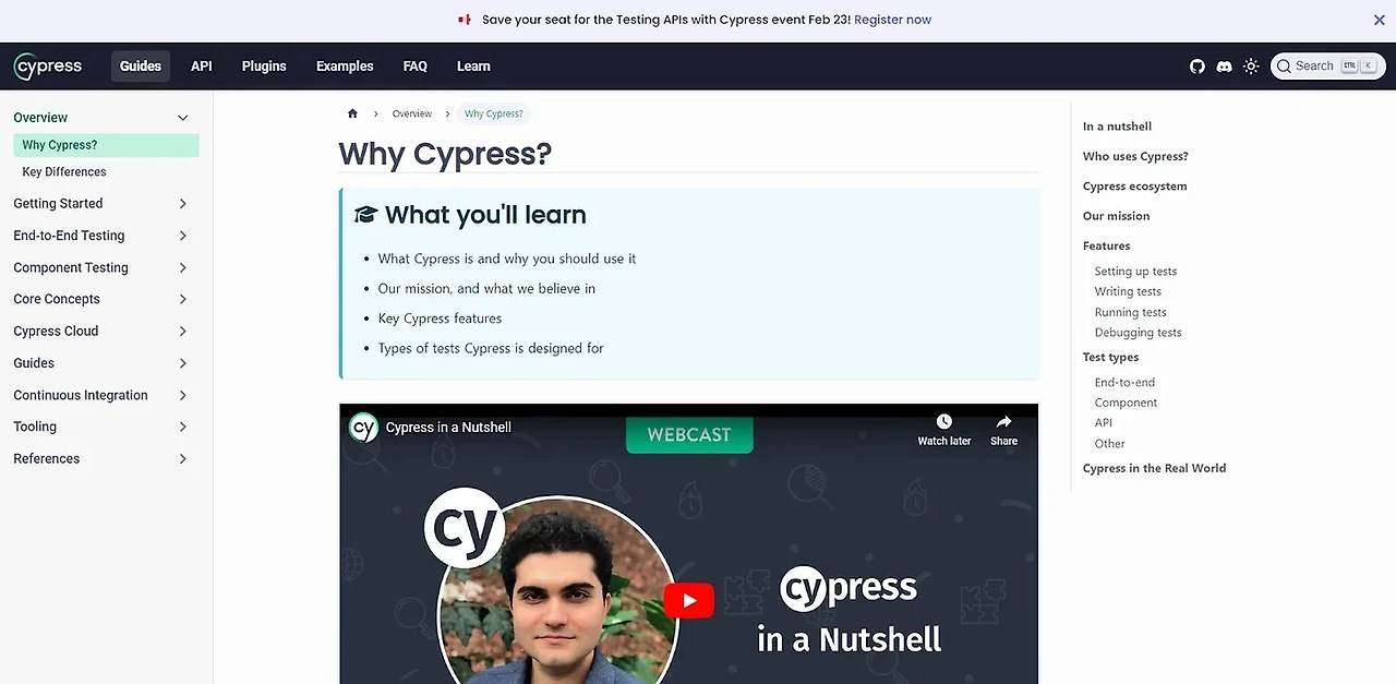 첫 번째 조언은 이미 가지고 있는 것을 활용하라는 것입니다. OpenView 포트폴리오의 오픈 소스 웹 테스트 회사인 Cypress는 좋은 예가 될 수 있습니다. 정기적으로 업데이트되고, 매력적인 대화형 콘텐츠를 포함하며, 방문자가 직접 Cypress를 사용해 보도록 유도하는 잘 구성된 도움말 자료로 구성되어 있습니다.