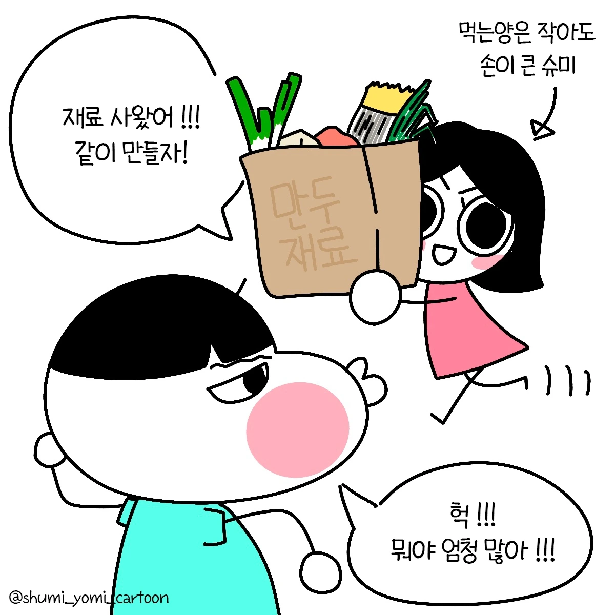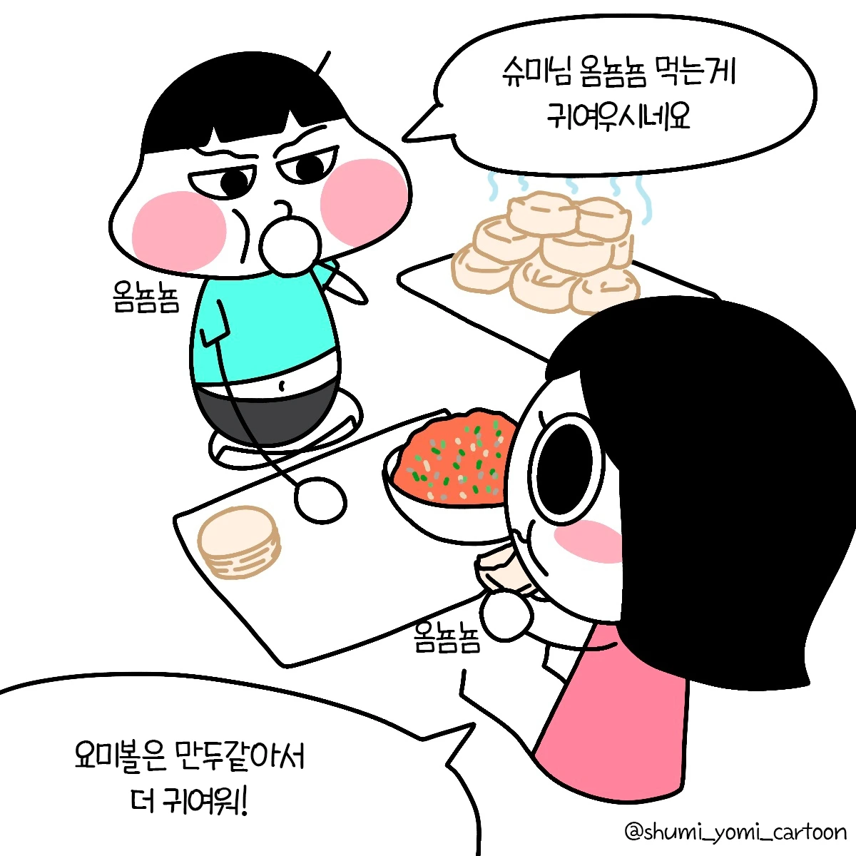 남자 친구 요미는 아주 아주 예쁘게 만두를 만들었답니다!