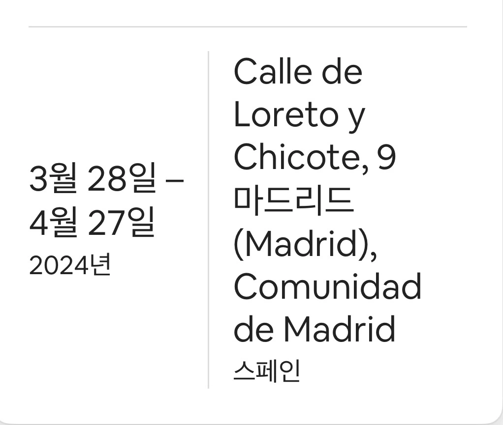 14시간 반의 긴 여행이 끝나고 오후 8시를 넘겨서 바라하스(Barajas) 1공항에 도착했다. 차갑고 세찬 바람과 흩날리는 가랑비를 맞으며 짐을 공항택시에 싣고 호텔로 출발했다. 숙소는 3월 28일~4월 27일 기간 동안 구시가지의 중심 도로인 그란 비아(Gran Via)에 인접한 아파트를 임차했다. 그러나 나는 늦은 밤에 아파트를 인수받기 싫어서 카스티야 광장(Plaza Castilla)에 있는 엑세 플라자 호텔(Hotel Exe Plaza)을 예약하고 투숙했다. 아파트는 다음 날 오후 1시경에 인수받기로 합의했다.