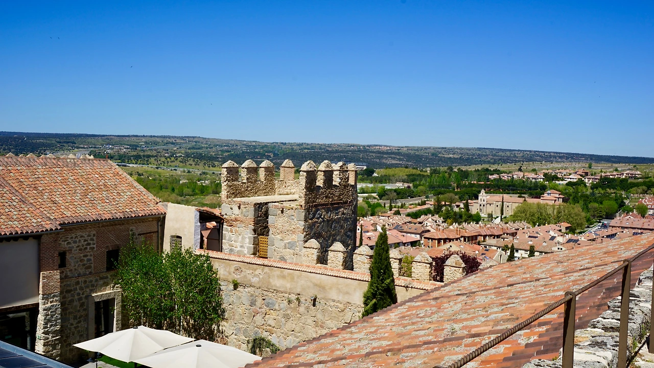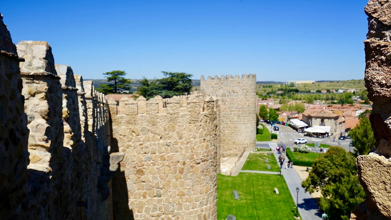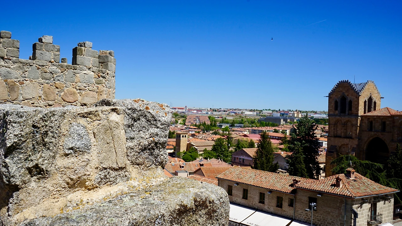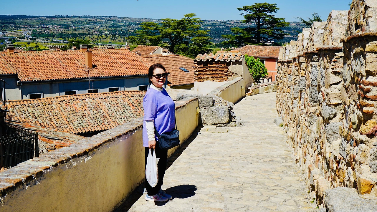성벽에 올라 아래를 내려다 보니 아래에서 보던 것과 다르게 매우 높게 느껴진다. 고소공포증이 다소 있는 나는 조금 어지럽다. 같이 따라온 아내 보기에도 민망해서 꾹 참고 성벽의 보도를 카메라 꼭 잡고 조심해서 걷는다. 성벽 위에서 보니 아빌라 구시가지와 신시가지가 저 아래에 넓게 보인다. 모두 주홍색 기와로 덮인 도시 풍경과 우리와 달라 매우 이국적이다.
