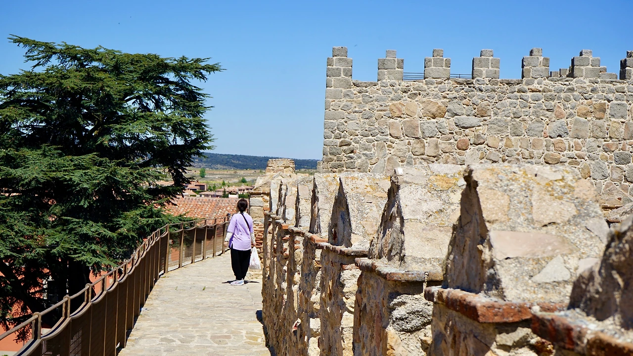 성벽 위를 걸어 보기로 했다. 성벽의 전체 길이는 약 2.5 킬로미터인데 이 중 1.3 킬로미터 정도만 개방하고 있다고 한다. 성벽 정문에 설치된 안내 사무실로 갔더니 입장료가 5유로이다. 어제 엘 에스코리알 경험이 있어서 경로 요금이 있는지 물어보았더니 65세 이상인 경우 3.5유로라고 한다. 그래서 70이 넘었다고 말하자 한 번 쳐다보더니 ‘호벤(Joven, 젊어 보이네요)’ 하고 바로 할인해 준다. 그런데 성벽으로 올라가는 입구가 그 사무실 안에 있다. 사무실 끝 벽에 난 계단으로 올라가니 바로 성벽 위 보도가 나온다.