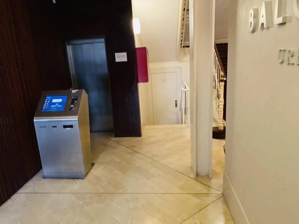 출발 전 호텔에서 메일로 알려준 데로 입구 전자 문에 코드를 입력하고 들어갔다. 어둡고 아무도 없는 좁은 로비에 셀프 체크인 데스크 하나만 있다. 어려운 설명 절차를 따라 받은 방 열쇠를 받아 들고 1 층으로 올라가니 복도가 어둡다. 하루 140 유로 아파트 호텔 치고는 너무한 것이 아닌가 할 정도이다.