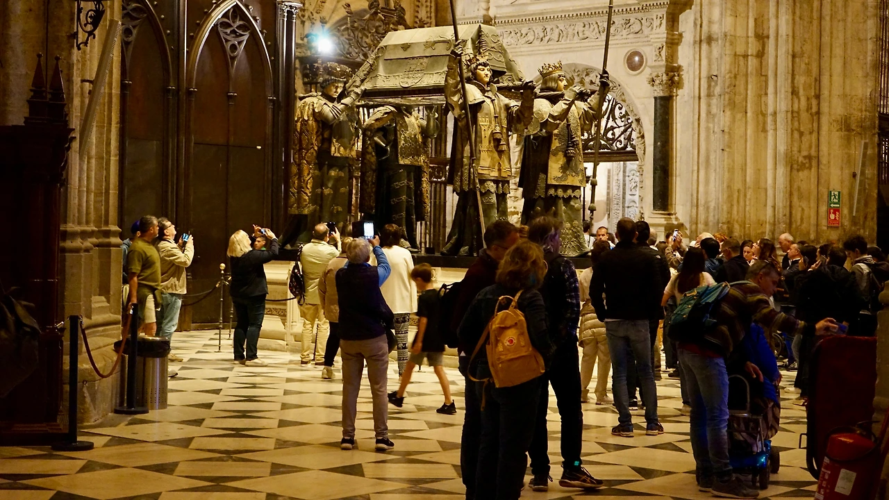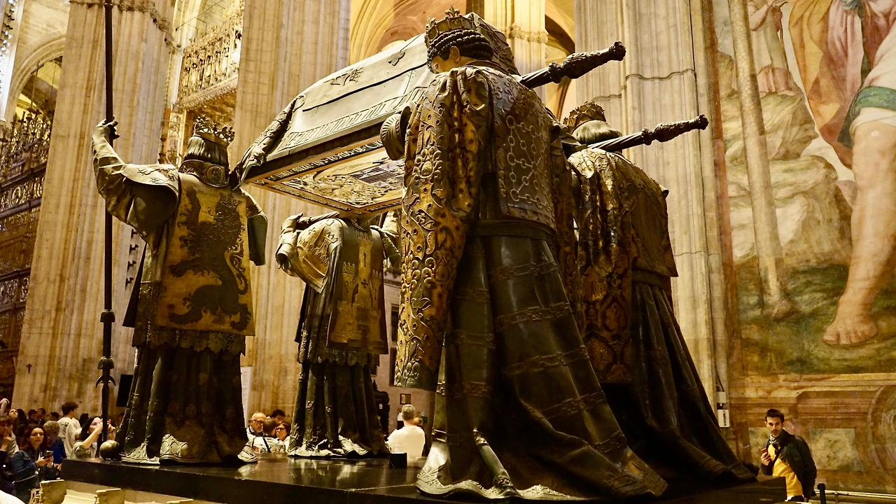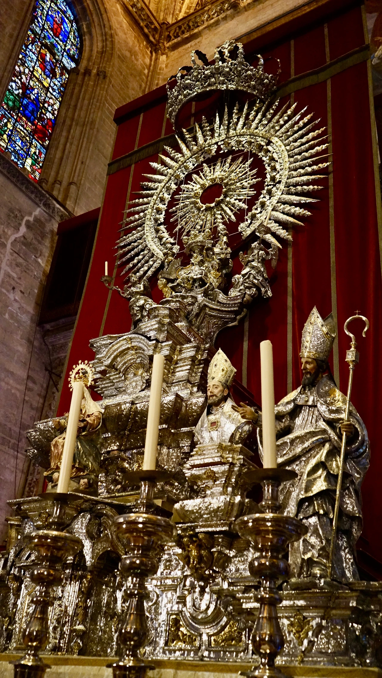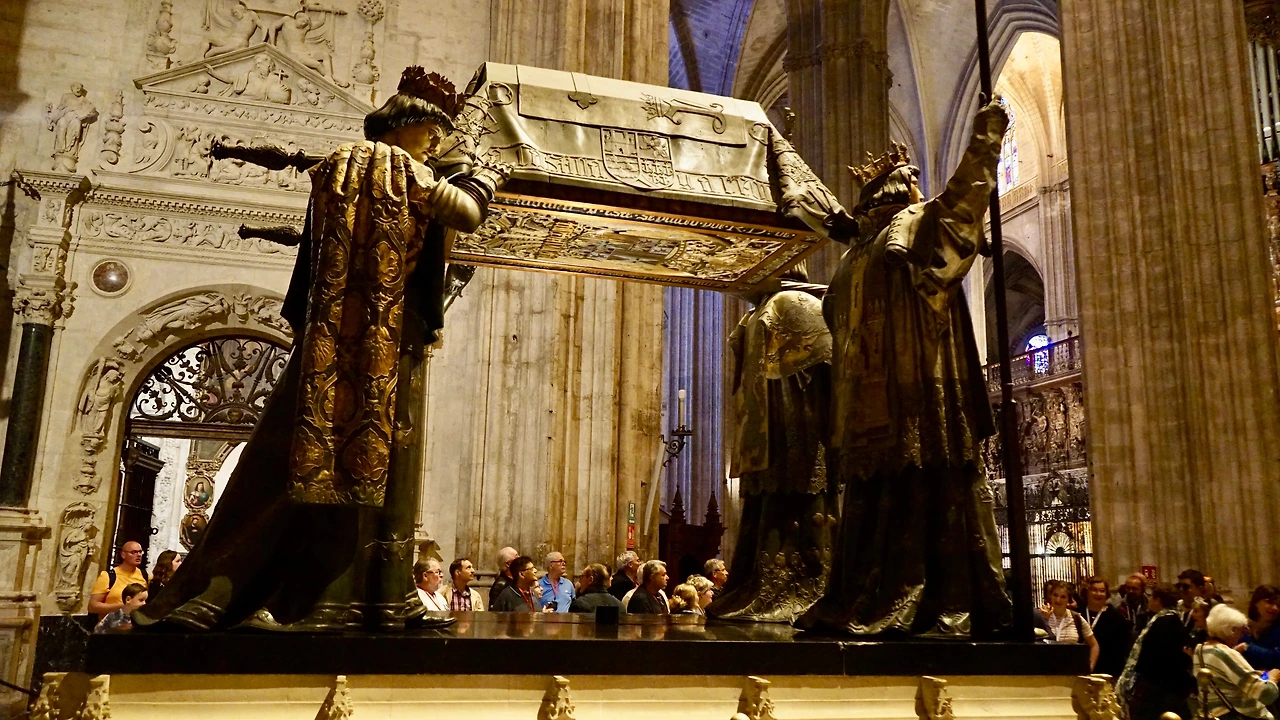 세비야 성당은 특히 콜럼버스 유해가 있다는 재단도 있다. 그런데 콜럼버스가 이곳에 묻혀 있다는 것에는 논란의 여지가 있다. 도미니카공화국 수도 산토도밍고에도 콜럼버스 대륙 발견 500주년 기념관이 있는데 이곳에도 콜럼버스 유해가 묻혀있다. 1992년이 대륙 발견 500주년인데 이때 나는 산토도밍고에서 근무하고 있었기 때문에 잘 기억하고 있다. 그러나 성당 안의 재단은 극적으로 보이게 잘 만들어 놓았고 많은 관광객의 관심을 끈다.