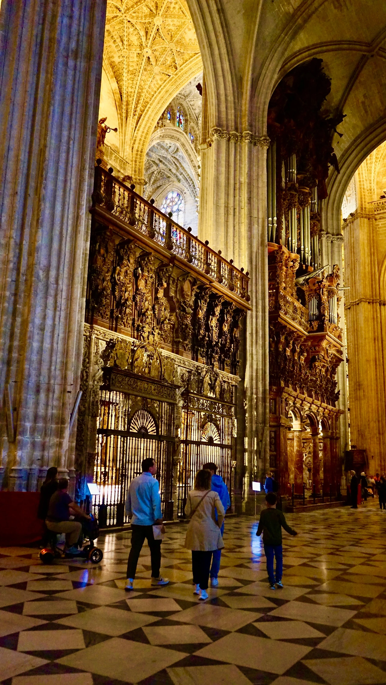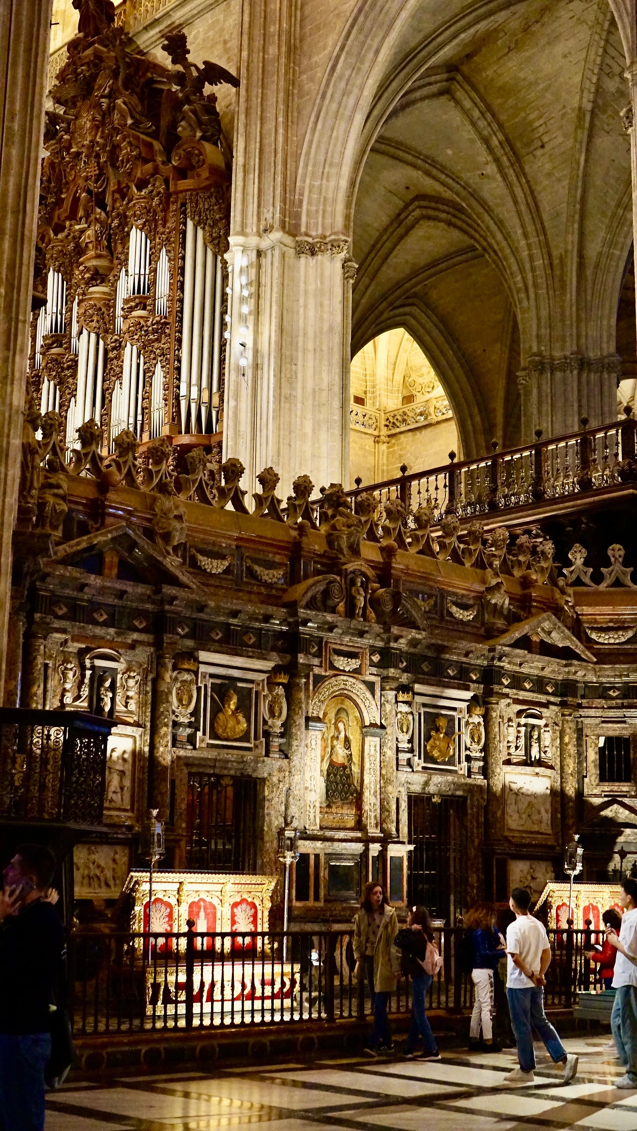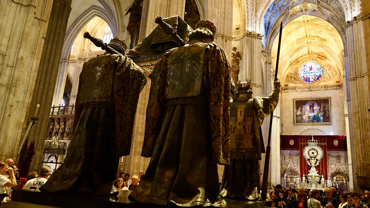 세비야 성당은 특히 콜럼버스 유해가 있다는 재단도 있다. 그런데 콜럼버스가 이곳에 묻혀 있다는 것에는 논란의 여지가 있다. 도미니카공화국 수도 산토도밍고에도 콜럼버스 대륙 발견 500주년 기념관이 있는데 이곳에도 콜럼버스 유해가 묻혀있다. 1992년이 대륙 발견 500주년인데 이때 나는 산토도밍고에서 근무하고 있었기 때문에 잘 기억하고 있다. 그러나 성당 안의 재단은 극적으로 보이게 잘 만들어 놓았고 많은 관광객의 관심을 끈다.