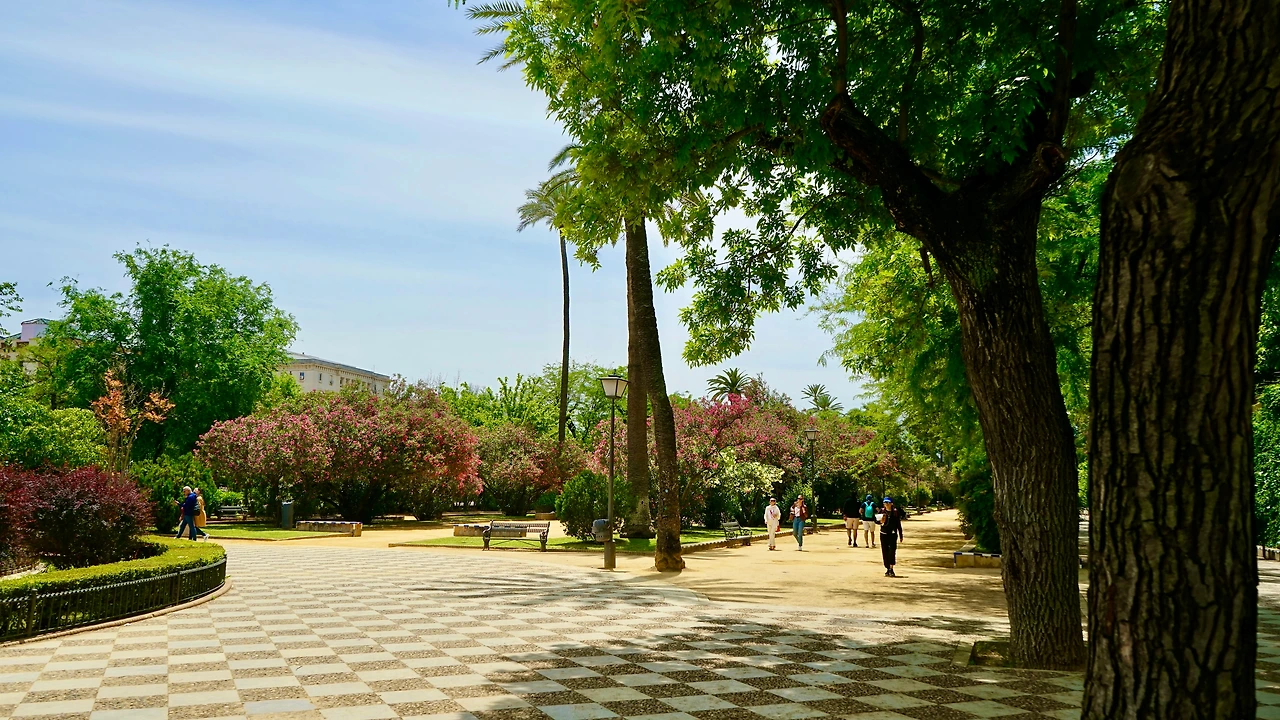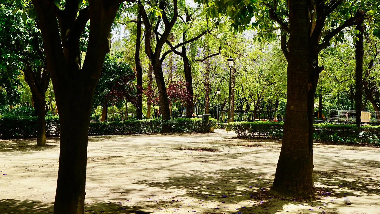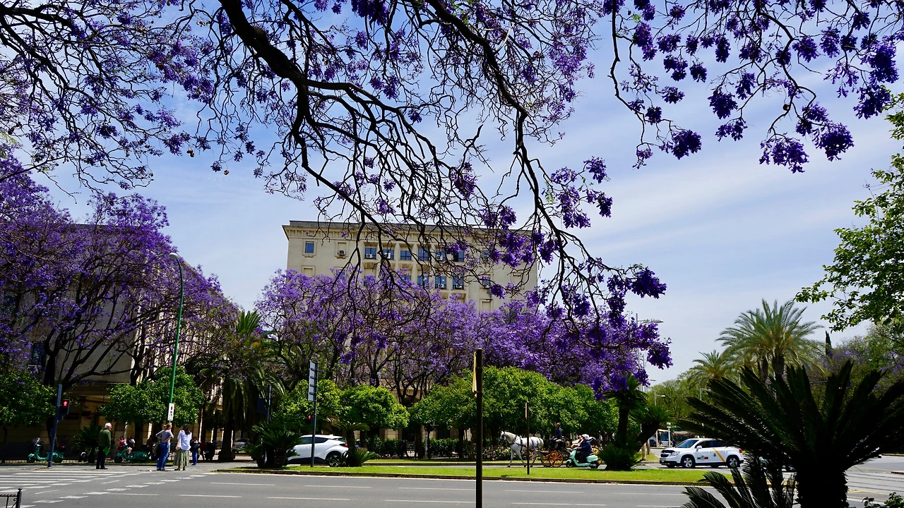 식사 후 다시 2킬로 남짓 걸어서 스페인 광장에 도착한다. 가는 길에 우연하게 만난 ‘무리요 정원(Jardin de Murillo)’이 매우 잘 조성되어 있다. 붉은 유채 꽃이 핀 나무들이 특히 아름답다. 무리요 정원에서 나와 길을 건너기 전에 본 길거리 가로수의 보라색 꽃도 보는 사람의 마음을 유혹한다.
