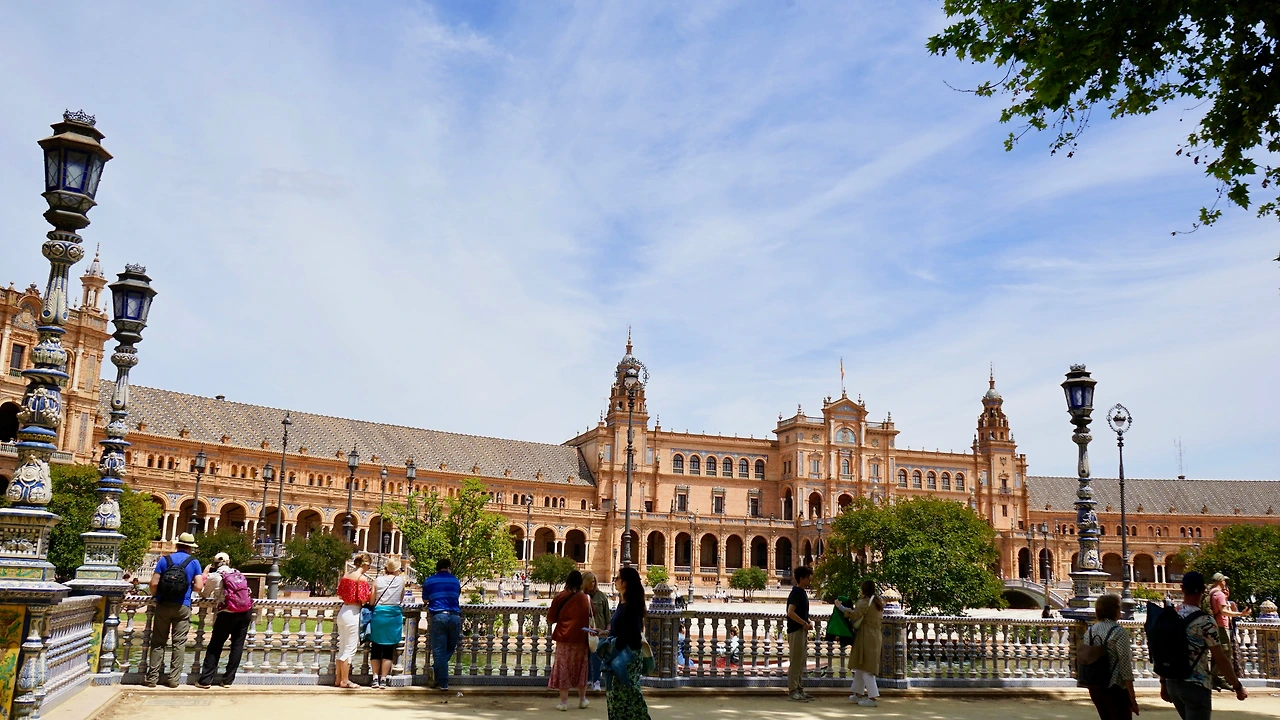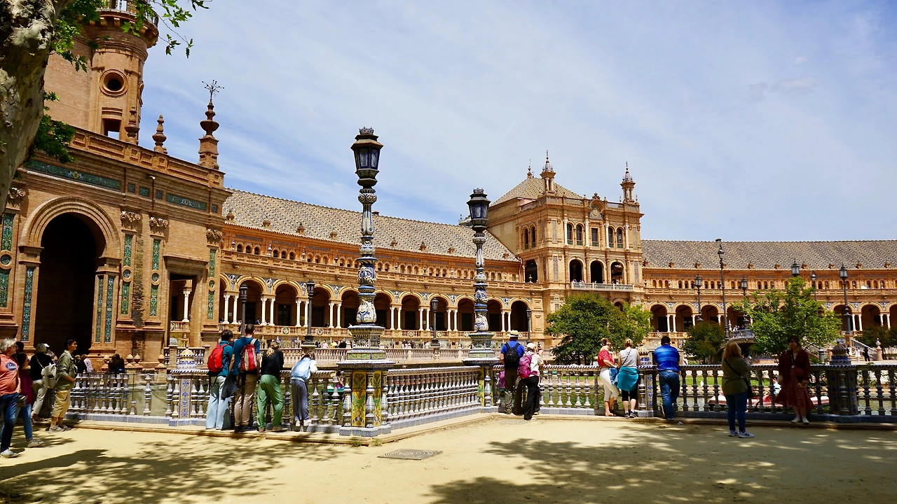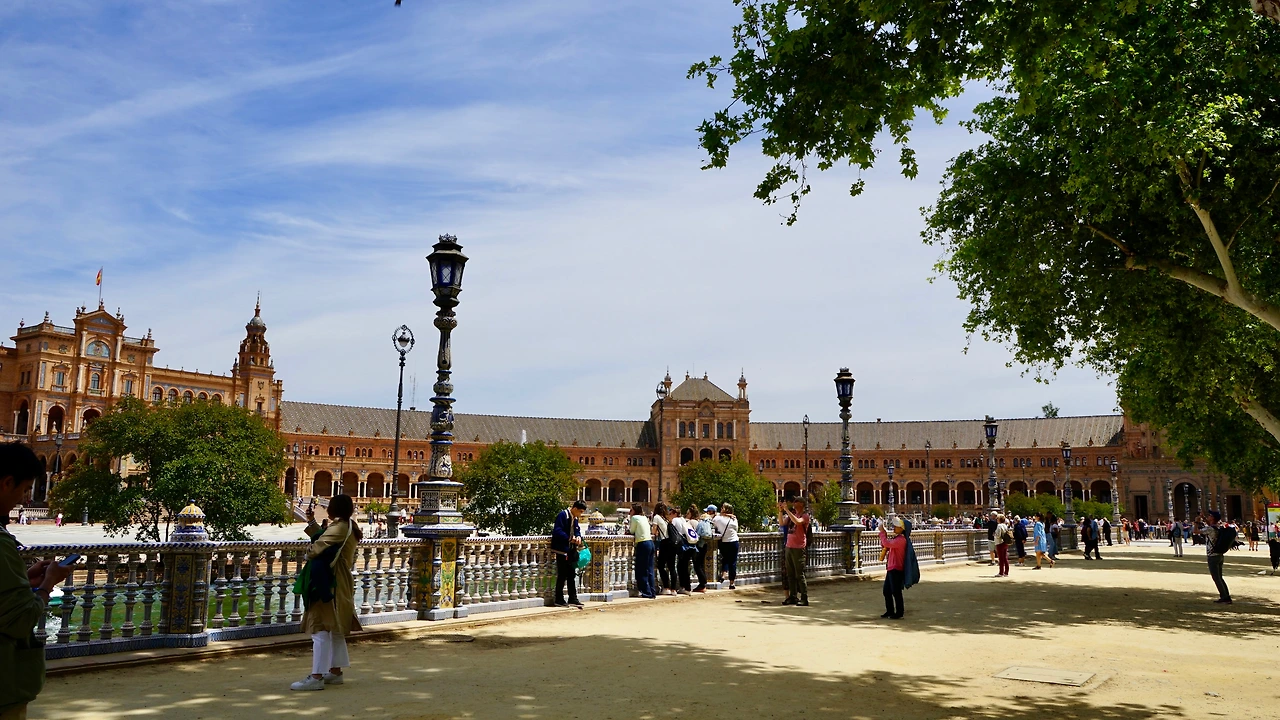 스페인 광장은 1929년 세비야에서 개최된 이베로아베리카 엑스포를 위해 건축된 붉은 벽돌의 건축물인데 매우 아름답다. 넓기도 하다.