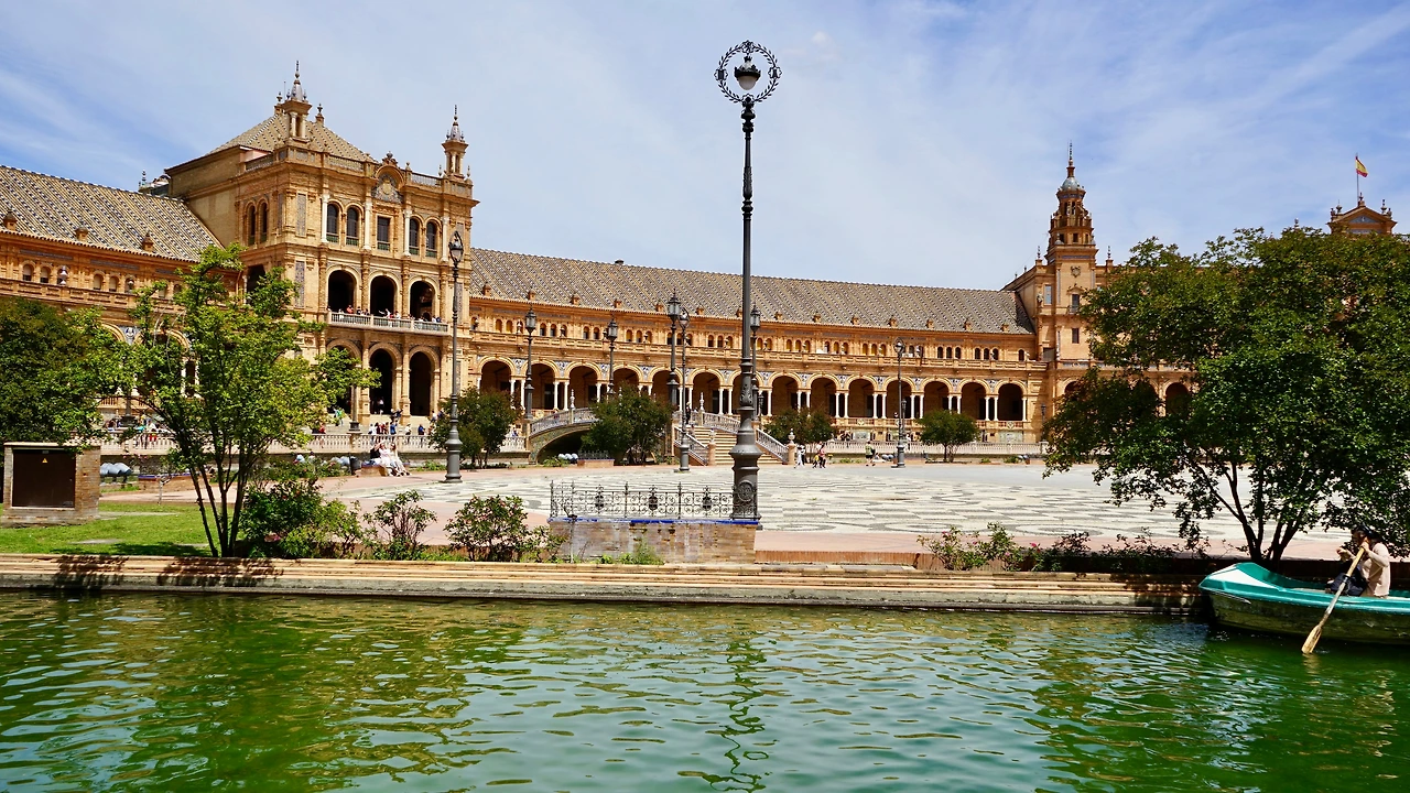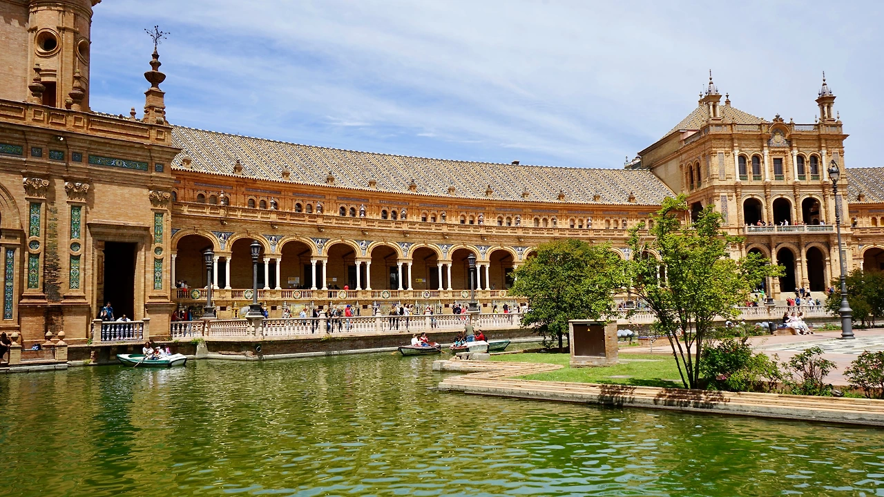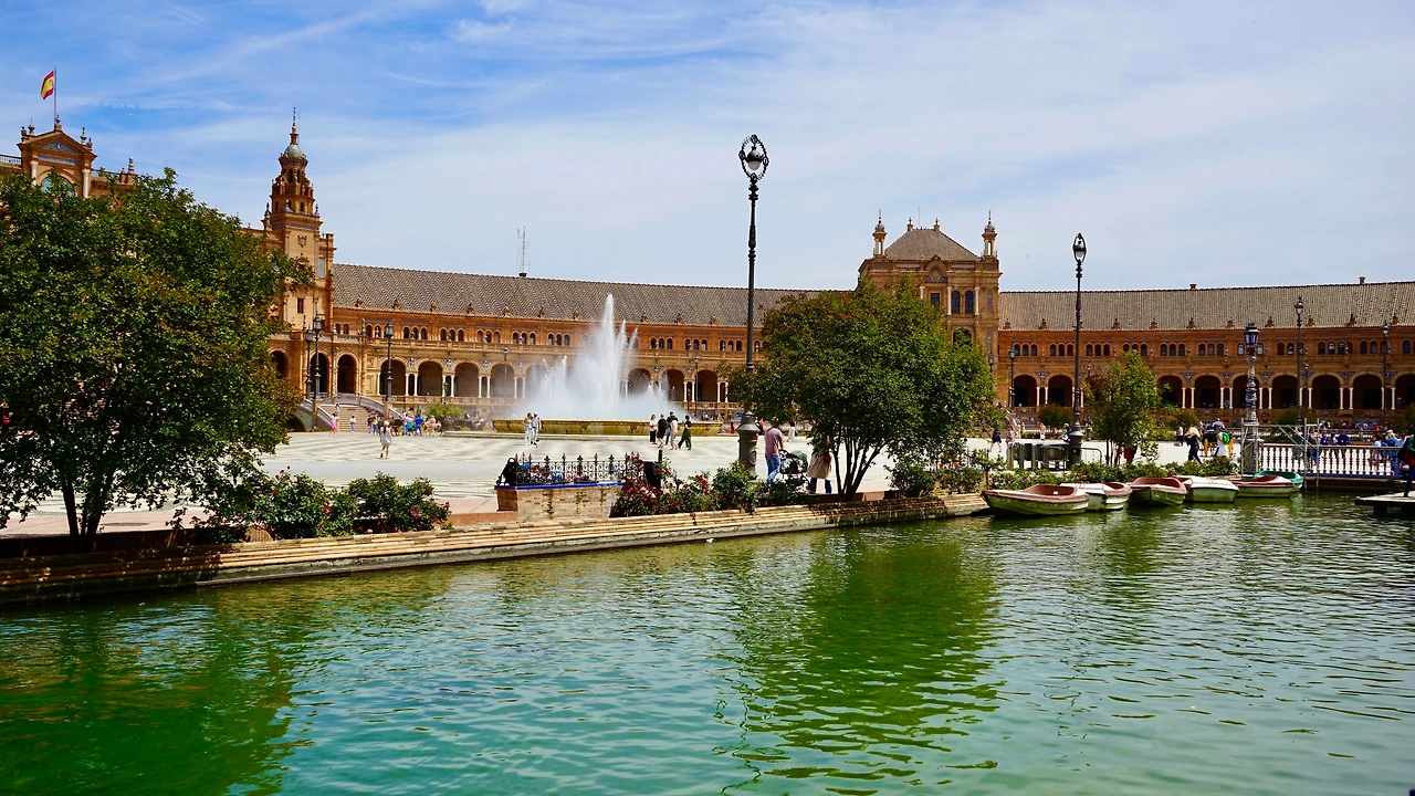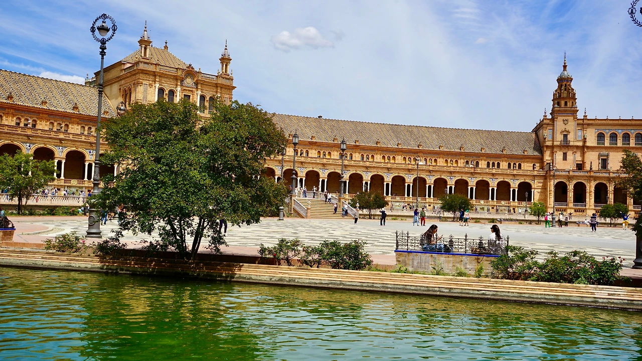 스페인 광장은 1929년 세비야에서 개최된 이베로아베리카 엑스포를 위해 건축된 붉은 벽돌의 건축물인데 매우 아름답다. 넓기도 하다.