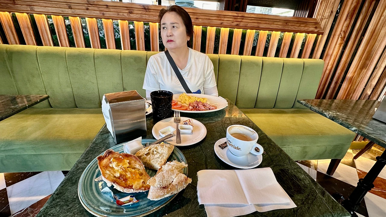 아침 식사는 주변의 적당한 카페식당을 찾아 해결한다. 아내는 미국 식 아침을 시켰는데 아주 맛있게 요리했다면서 만족한다.