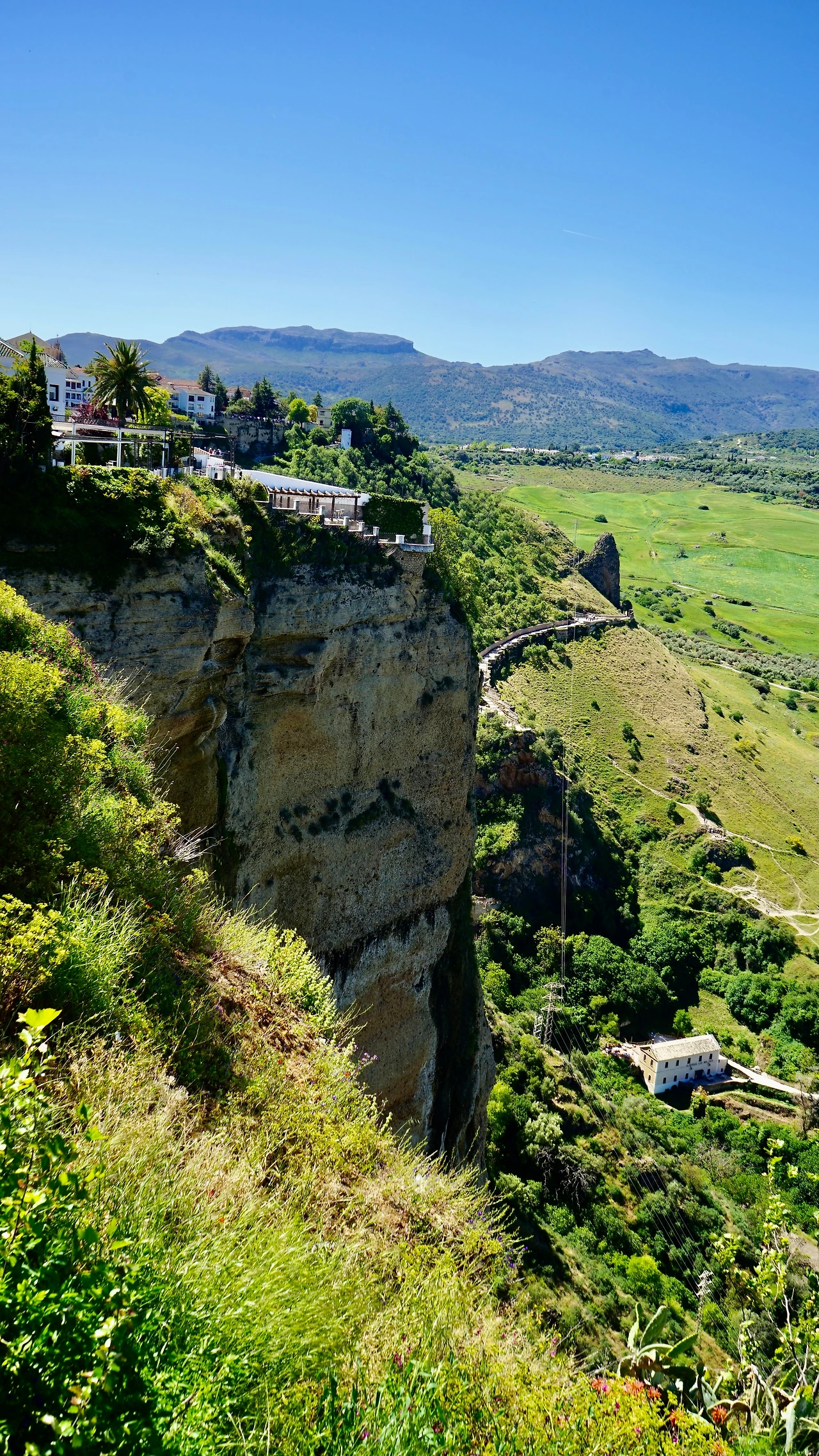 론다는 2017년에 한 번 와 본 적이 있다. 그래서 대강의 관광길을 기억할 수 있다. 그 길을 따라 다시 걸어간다. 자연 풍광은 그저 그 자리에 변하지 않고 있다. 아찔한 계곡 아래에 시원하게 펼쳐진 넓은 평원을 쳐다본다. 이 풍경을 카메라가 표현해 낼 수가 없다. 이 숨 막히도록 아찔한 느낌의 입체적인 계곡 풍경을 카메라에 담으면 평면화가 되고 만다. 밋밋해져 버린다. 그래서 마음의 카메라에 담고 가는 수밖에 없다.