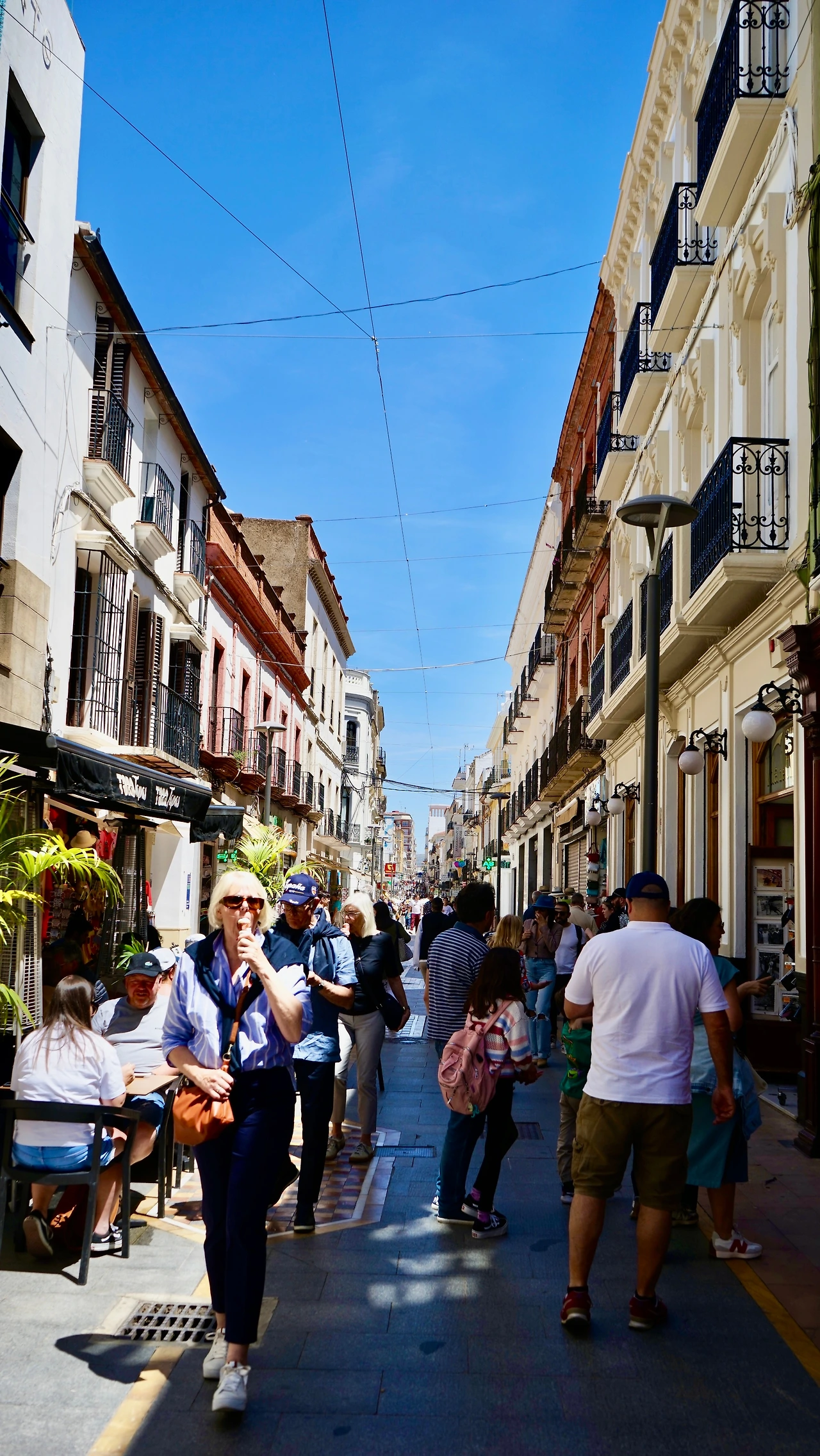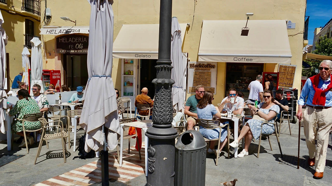 점심식사를 한 뒤 3시 30분 세비야행 버스 출발시간까지는 시간이 있어서 중심거리를 산보한다. 그런데 인파가 장난이 아니다. 빈 공간이 없이 상가가 꽉 찬 긴 길에 관광객이 넘치고 중심거리에 연결된 골목에 만들어진 조그만 광장의 테라스 식당도 만원이다. 정말 대단하다는 생각이 든다, 결국 따져보면 전체적으로 모든 관광지역에 사람이 넘친다. 과거 같으면 비수기인데도 불구하고.... 세비야에서 우리를 정류장에 데려다준 택시 운전수도 ‘최근 세비야는 붐’이라고 말한 것이 생각난다.