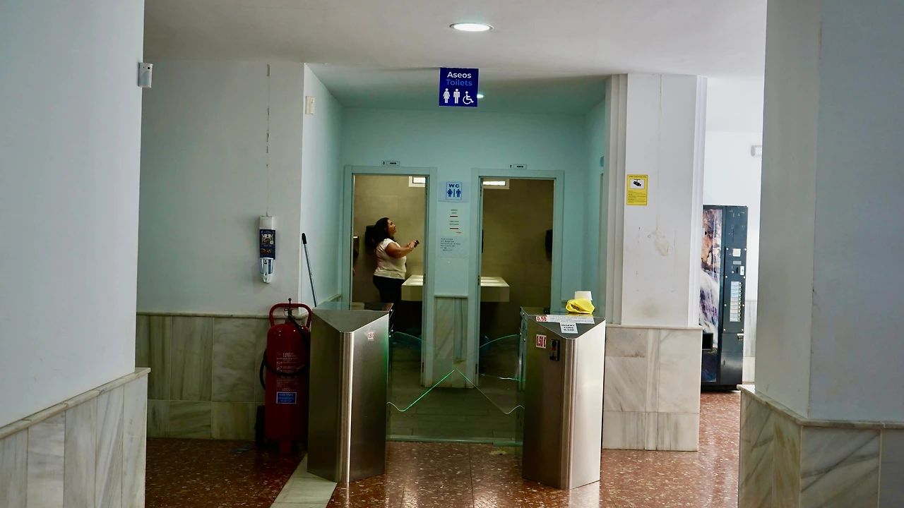 2시간 걸려 론다의 비좁고 낡은 버스 정류장에 도착하니 대합실에는 화장실 밖에 보이지 않는다. 화장실 입장료가 50센트인데 유일한 화장실이라 사람들이 몰려든다. 아마도 이 사업을 도급받은 사람은 돈을 벌겠다. 유료 화장실이라 내부는 그런대로 청결하다.