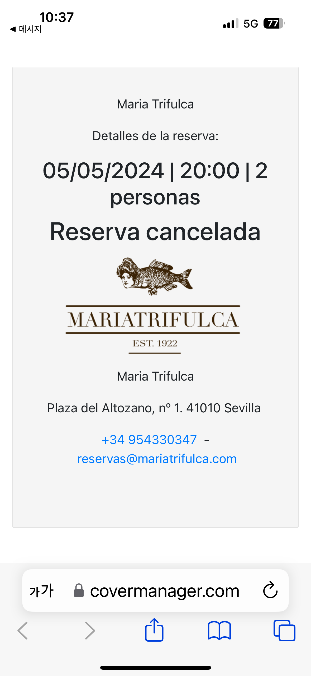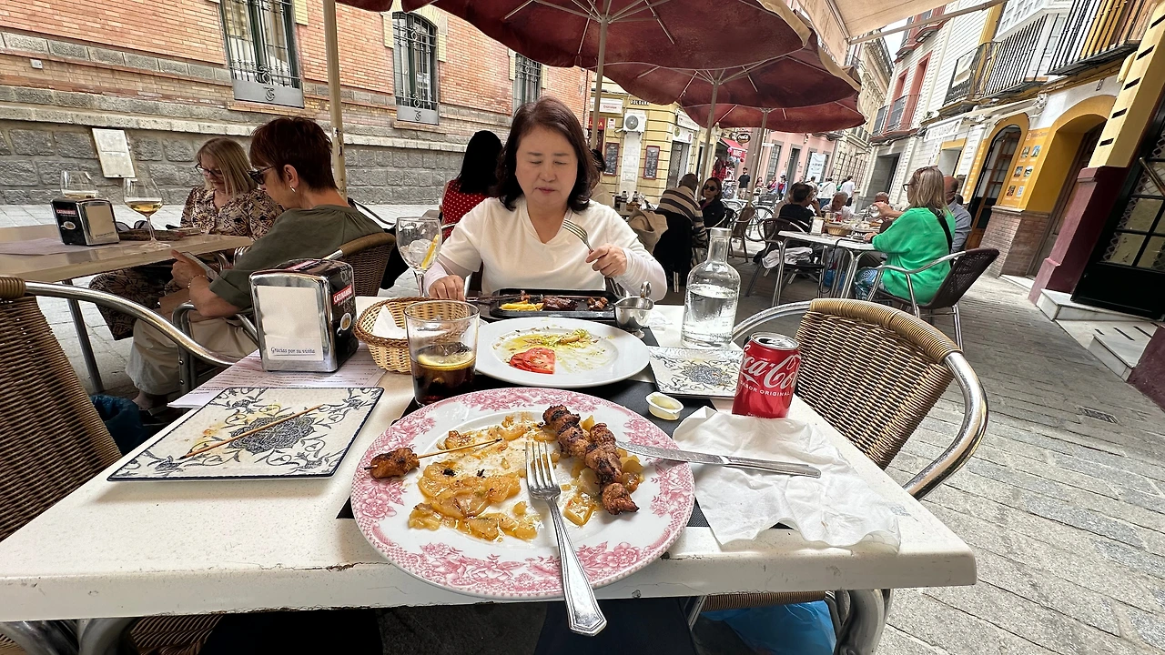그럼에도 불구하고 뙤약볕 속에 3시간을 줄 선다. 다른 사람들도 순한 양 떼같이 가만히 기다린다. 12시가 넘은 시간에 입장표를 구입한다. 입장료는 14.5유로인데 경로 입장권은 7유로이다. 그런데 오후 5시 30분 입장이다. 시간이 공백이 너무 크다. 문득 어제 마드리드 지인이 소개해 준 강변 식당을 8시에 예약한 것이 생각난다. 너무 피곤할 것 같아 취소하려고 전화번호를 찾고 있는데 예약 컨펌 문자가 온다. 그래서 반갑게 취소한다.