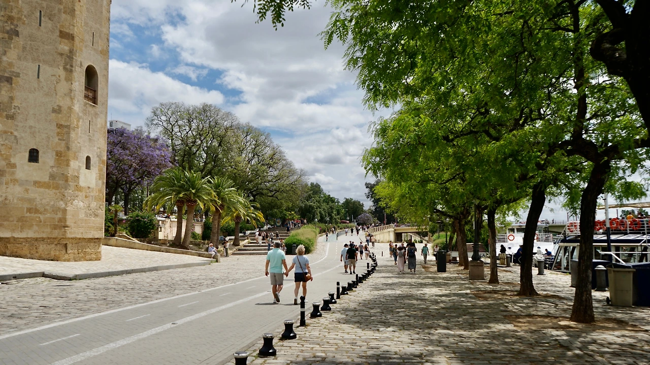 식사 후에 왕성 가까이 과달키비르(Guadalquivir) 강가에 있는 금탑(Torre de Oro)에 가보기로 한다. 300미터 거리니까 금방 도착한다.