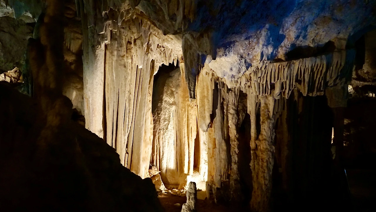 개방된 동굴의 공간 규모와 넓이 그리고 종유석들이 만들어내는 장엄하고 원시적인 풍경은 비현실적으로 보인다. 2019년 가을 스페인 마요르카 섬에서 가본 드라치 동굴(Cueva de Drach)과 분위기가 아주 다르다. 훨씬 남성적이라고 할까?