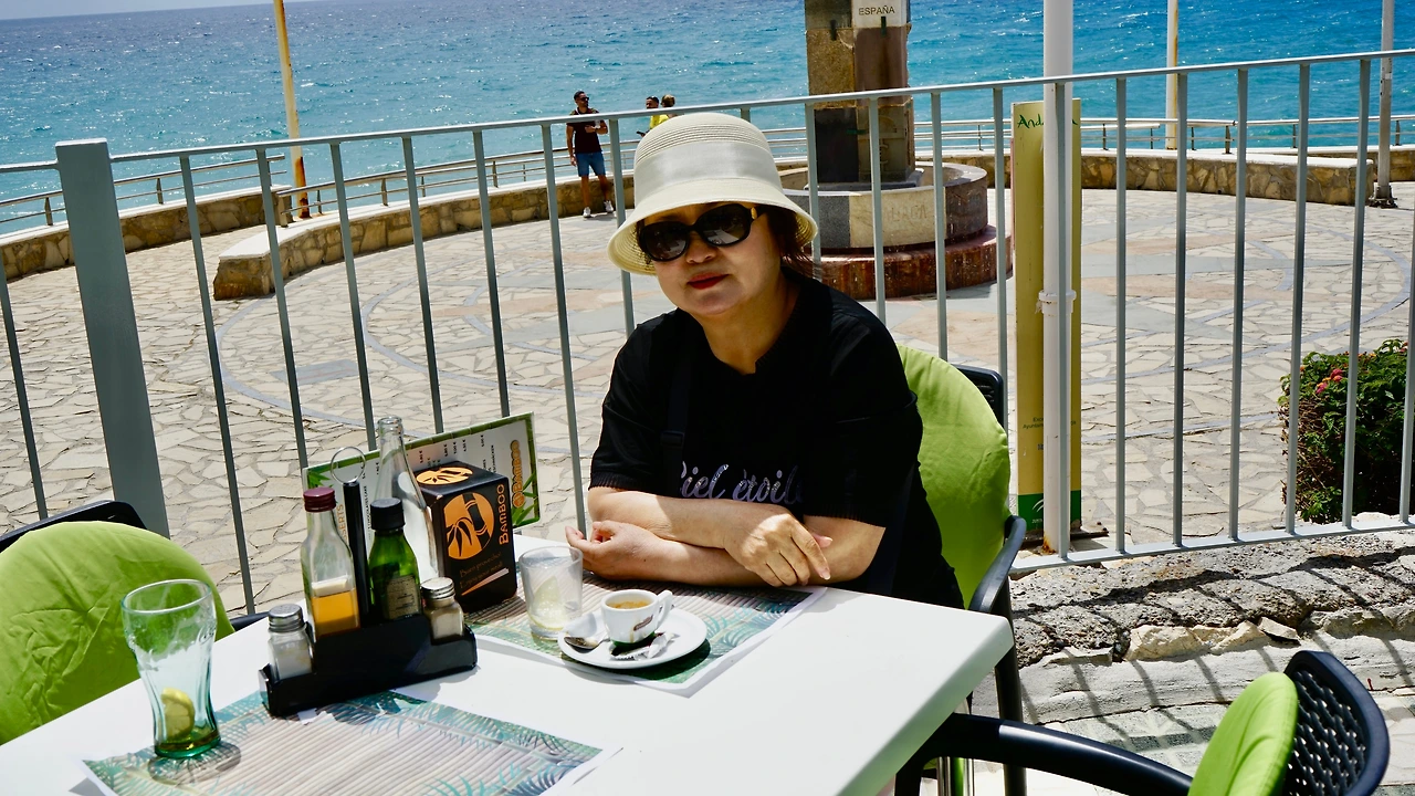 네르하 해변이 아름답기로 유명하다고 한다. 바다가 푸르고 배후 도시에 하얀 집들이 많아서 아름다운 풍광을 보여주는 것은 사실이다. 그러나 말라게타 해안과 비교하면 규모나 편리함이 많이 부족하다. 그럼에도 불구하고 아름답다. 해변 가로 내려와 넓은 바다에 취해 사진 한 컷 찍었더니 어데서 ‘밥 좀 먹자’ 소리가 들린다. 아내는 내가 해변으로 내려오는 그 순간 해변 가 식당 테라스로 들어간 것이다. 벌써 바다가 보이는 좋은 자리를 마련해 앉아 있다. 샐러드와 스파게티를 주문해 만족하게 먹는다.