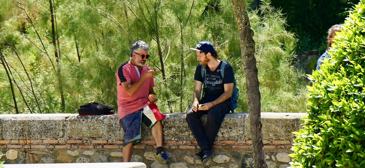 전망대에는 기타를 치는 사람들이 모여 있다. 이곳에서 길거리 연주를 하는 사람들인데 관중이 없어서인지 서로 모여 앉아 얘기들을 하고 있다. 전망대에 오는 사람들은 대부분 햇빛을 피해 뒤에 크게 자리 잡고 있는 카페의 테라스 식탁에 앉아있다.