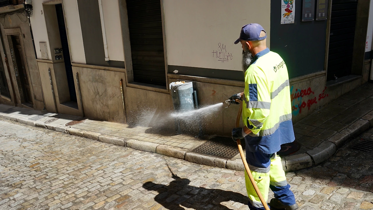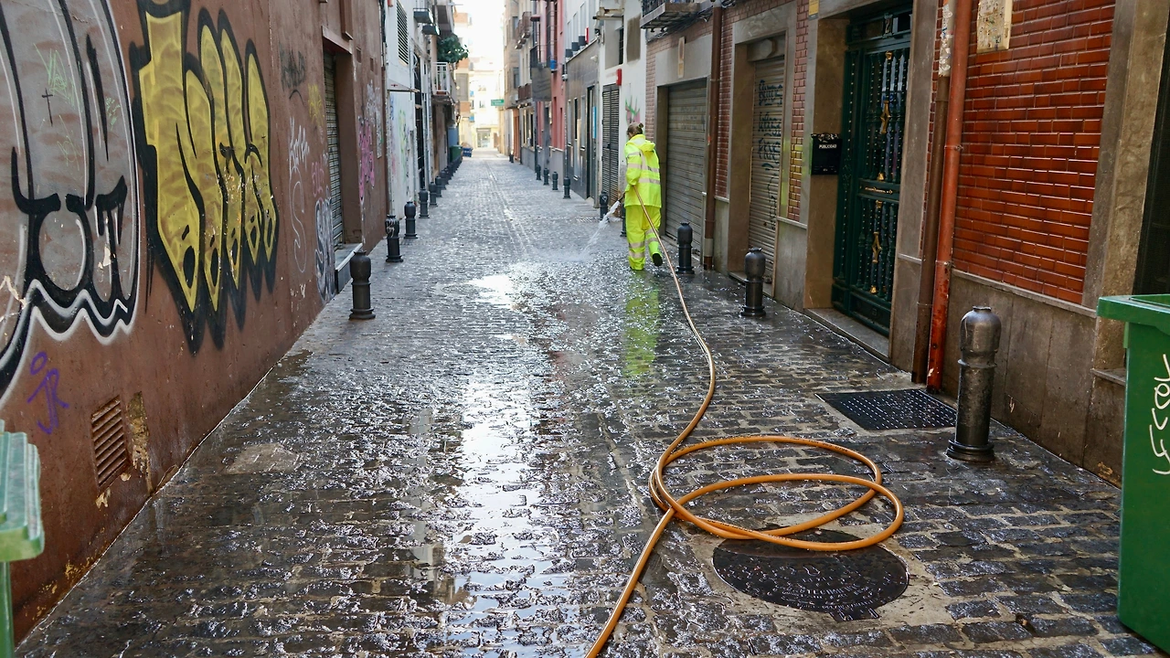 8시 반이 넘은 시간인데 일요일이어서 사람의 이동이 뜸하다. 그런데 가다가 골목길을 청소하는 여성 청소부를 만난다. 고압 물 스프레이를 가지고 돌길에 물을 쏘며 쓰레기를 흘려보낸다. 그러니까 돌길을 물로 청소하는 것이다. 양해를 구하고 사진 한 컷을 찍는다. 이런 청소 광경은 알람브라 숲에 가는 길목의 한국 식당 앞 골목길에서도 보게 되는데 이때도 수염을 기른 남성 청소부의 양해를 얻어 사진으로 남겨 놓는다. 매우 흥미로운 풍경이다.