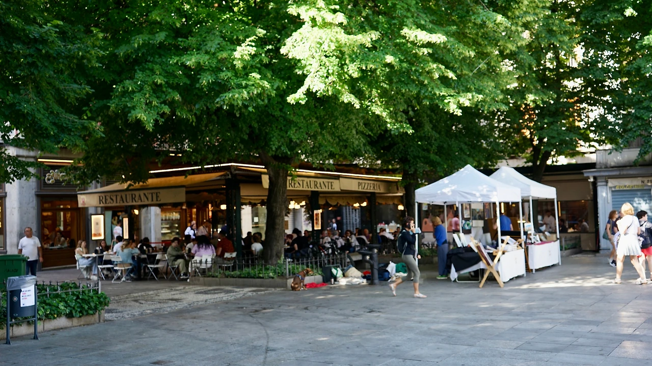 성당 쪽으로 가다 보니 카페와 사람들이 많은 광장을 만난다. 지도에 ‘빕 람블라 광장(Plaza de Bib Rambla)’으로 나와있다. 카페에서 아침 식사를 하는 사람들이 먹는 것을 보니 츄러스를 초콜릿에 찍어 먹고 있다. 조금 더 관찰하니 대부분의 카페들의 아침 메뉴가 츄러스로 구성되어 있다. 또 츄러스를 전문적으로 만드는 상점도 있는데 아마 유명한 곳인지 줄을 길게 서고 있다. 또 주변에 대형 기념품 상가도 있고 사람의 움직임이 분주하다. 그러니까 알려진 광장인 것으로 생각된다.
