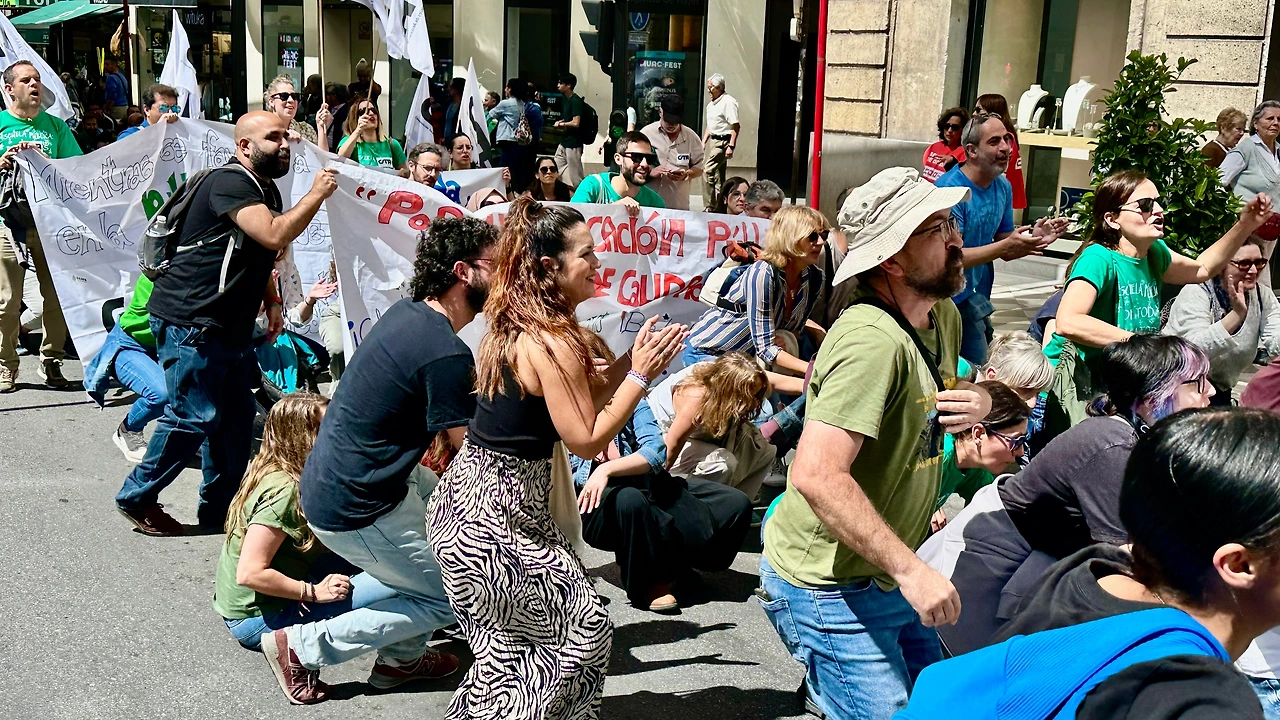 점심 식사를 마친 뒤 2시가 넘어 호텔로 향했는데 오늘은 날씨가 그렇게 덥지 않고 걷기에 마치 좋다. 그런데 돌아오는 길목이 갑자기 소란하다. 교사들이 시위를 하는 것 같은데 많은 사람들이 나와있다. 소리를 지르며 구호를 외치고 있다. 주장하는 것은 '공교육을 위하여: 정교사 증원'이다. 세상은 어디를 가나 비슷하다는 생각을 한다.
