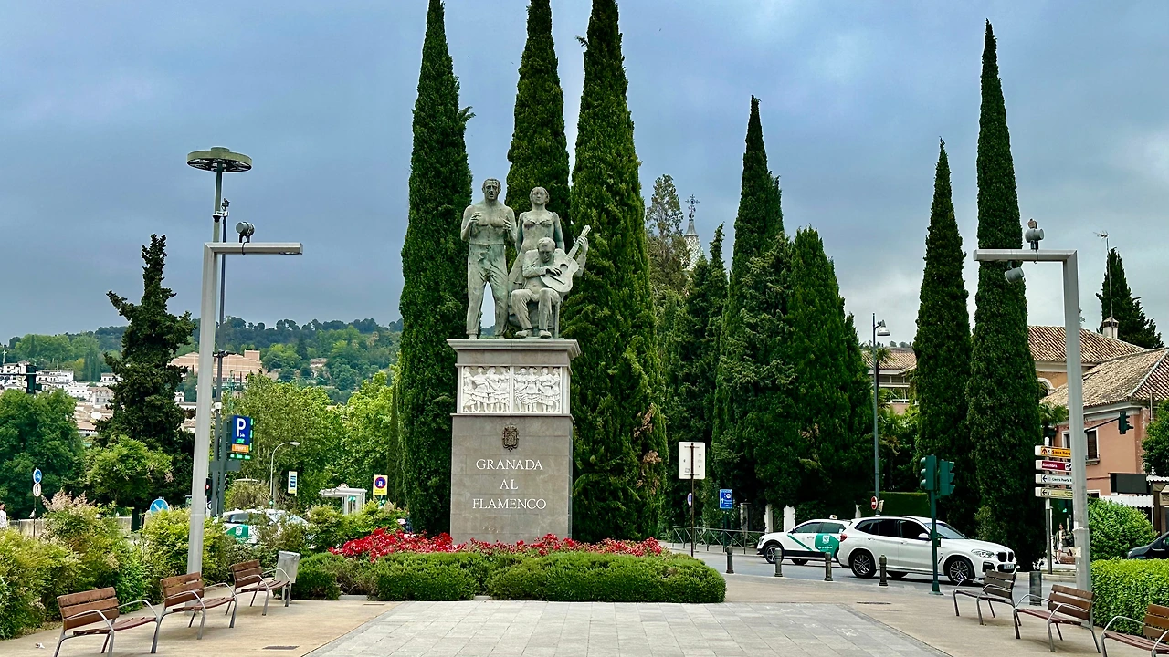 강 산책로에 플라멩코 동상도 보인다. 누구를 기리는 것인지 아니면 단순하게 플라멩코를 상장하고 있는 것인지 모르겠다. 동상에 새겨진 글은 '그라나다가 플라멩코에게'로 번역된다.