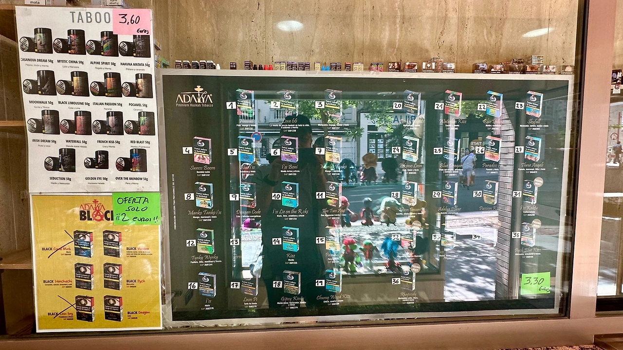 호텔로 돌아오는 중에 '타바코스(TABACOS)' 가게에 들어간다. 어느 도시에 가던지 동일한 간판의 이 가게가 곳곳에 있다. 타바코는 담배란 뜻이니 담배를 파는 가게인 것은 알고 있다. 그런데 스페인에서 내가 맡은 담배 냄새는 매우 다양하고 독특해서 아마 이 가게에서 흡연자의 선호에 맞춰 담배를 제조해 주지 않을까 하는 생각이었다. 가게에 들어가서 한 번 물어볼 요량이다. 그런데 들어가서 진열된 상품과 판매안내판을 보니 의문이 해소된다. 담배는 두 가지 형태로 판다. 하나는 개비 담배이고 다른 하나는 우리나라의 봉초 형태로 파는데 각각 여러 가지 향이나 첨가물을 넣어 만든 담배이다. 흡연자는 자신들이 선호하는 향을 찾아 구매한다. 그러니 냄새도 각양각색이고 또 이 냄새들이 함께 섞이니 전체적으로 묘한 냄새가 모든 곳에 배어 있다. 매우 싫다.