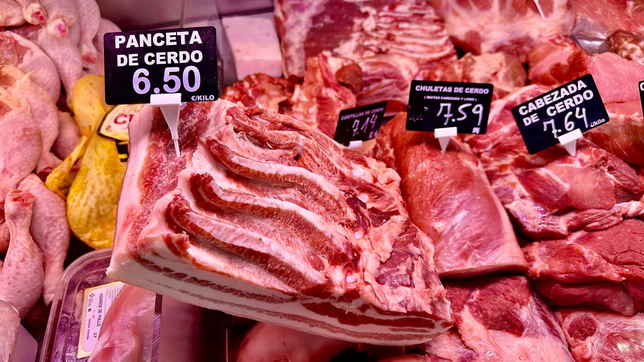 마드리드의 ‘무세오 델 하몬(Museo del Jamon)’과 같이 잘 차려진 하몬 전문점이 보여 들어가서 하몬 이베리코(Jamon Iberico) 100 그램을 구입한다. 나오면서 매대를 보니 삼겹살이 있다. 스페인어로 삼겹살을 ‘판세타 데 세르도(Panceta de Cerdo)’라고 부른다. 1킬로에 6.5유로인데 우리나라에서는 얼마인지 모르겠다. 아내 얘기로는 2000년 초 마드리드에서 살 때 삼겹살이 없었다고 한다.
