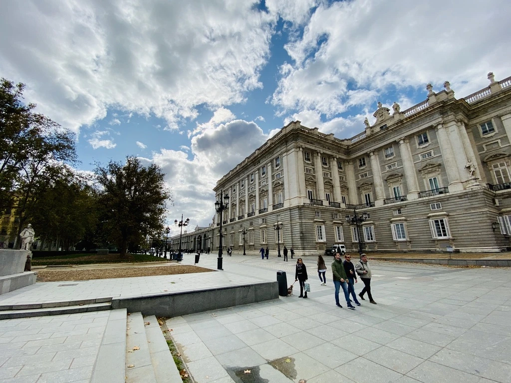 왕궁은 마드리드에 살 때 자주 왔다. 그럼에도 불구하고 왕궁의 느낌은 계절과 시간에 따라 느낌이 다르다. 가을의 왕궁은 쓸쓸하다. 낙엽이 많이 떨어져 있고 바람이 분다. 구름 속의 햇살이 나왔다 들어갔다 하며 우울한 풍경 그리고 갑자기 화사한 풍경을 연출한다. 건물에 비치는 햇살은 여름의 강렬함이 사라지고 잔잔하고 따뜻하다. 그러나 쓸쓸한 느낌을 준다. 왕궁과 주변 풍경이 함께 어우러져서.