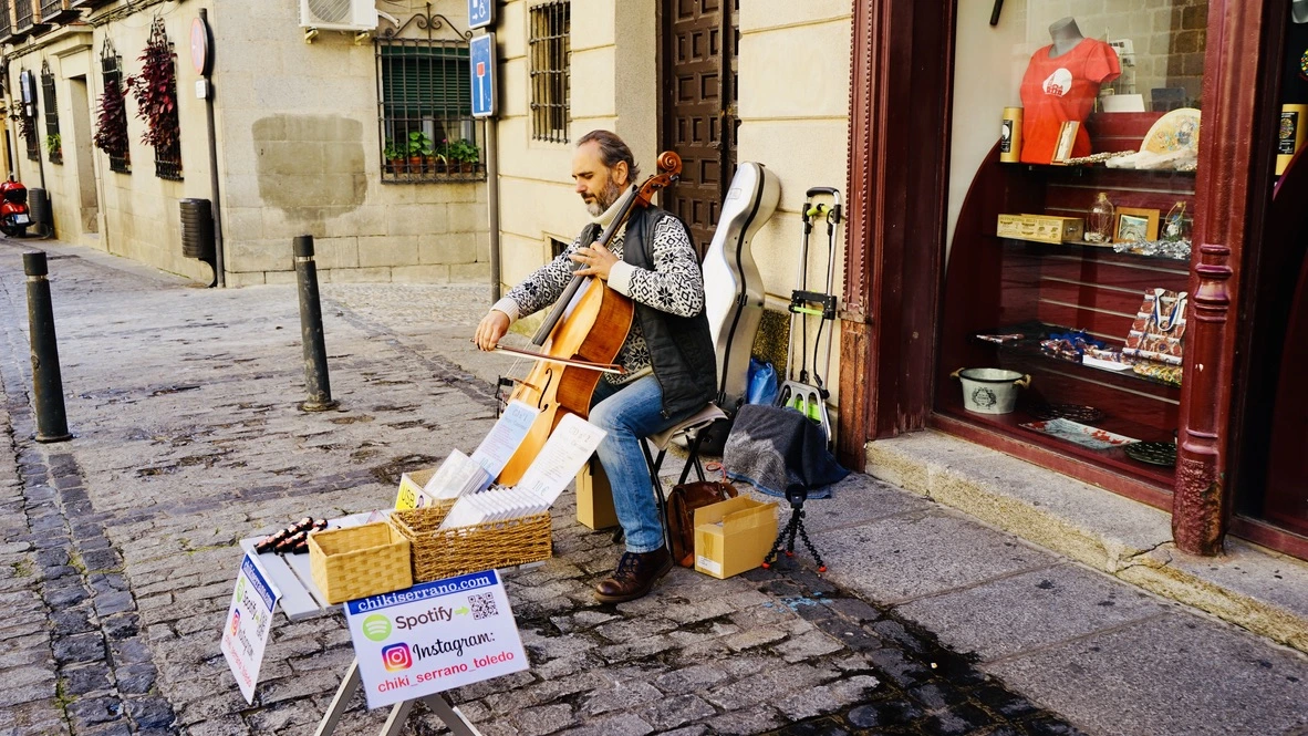 톨레도 대성당 부근 거리의 악사가 연주를 한다. 기억해 보니 2년 전에도 그는 이 자리에 있었다. 아내가 옆구리를 찌르며 지폐 한 장 달라고 한다. 연주가 끝난 뒤 바구니에 놓고 온다.
