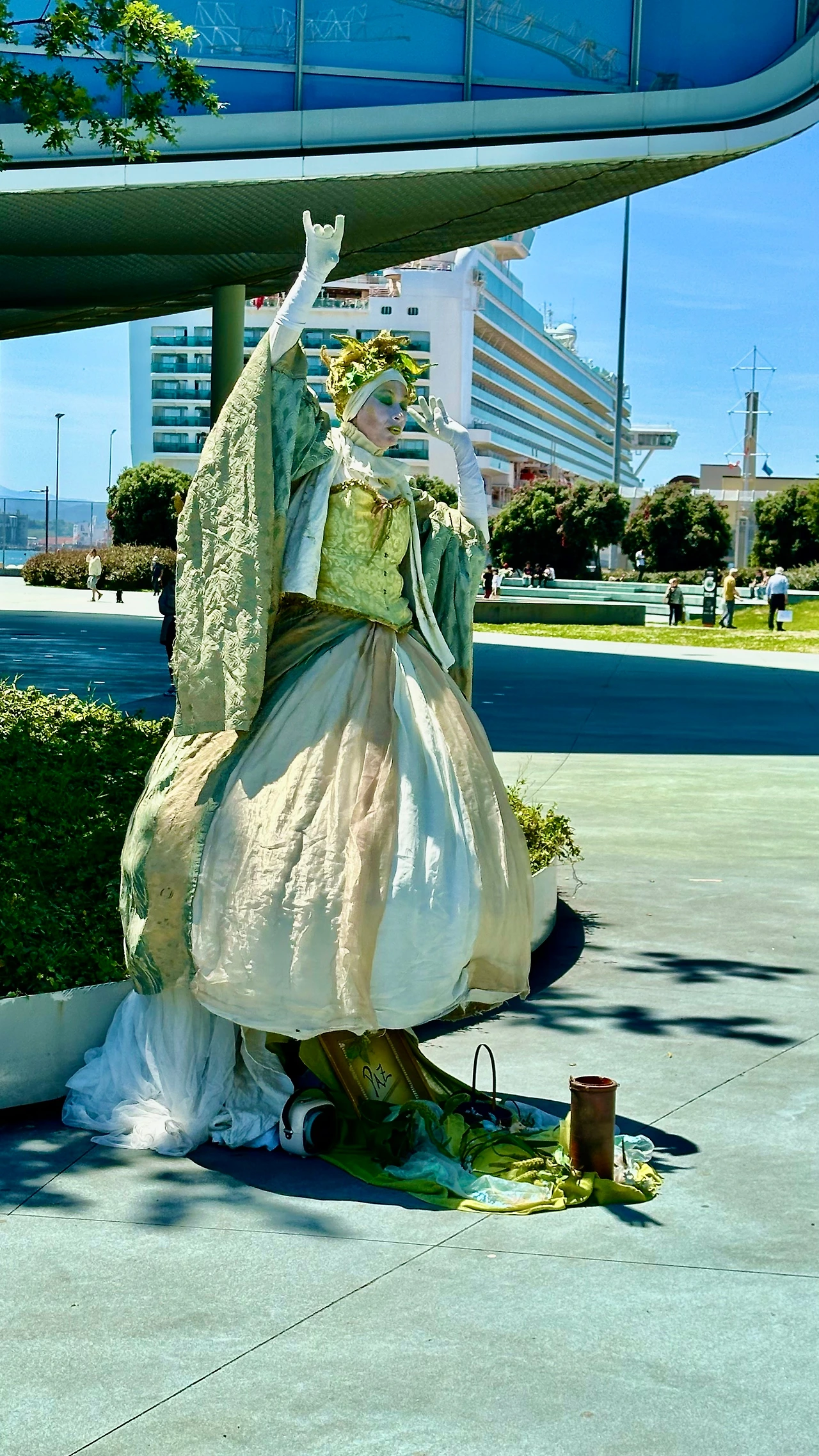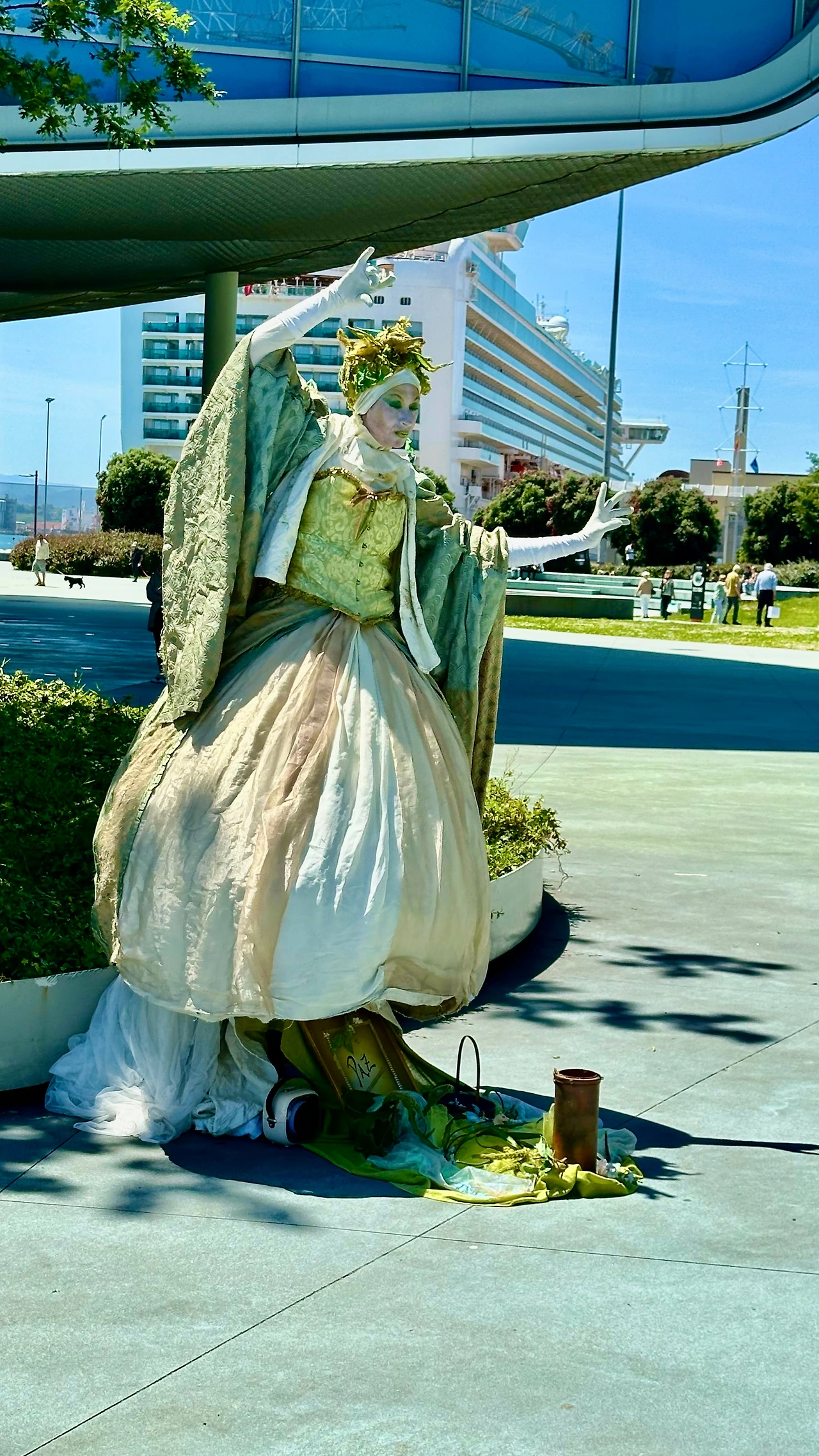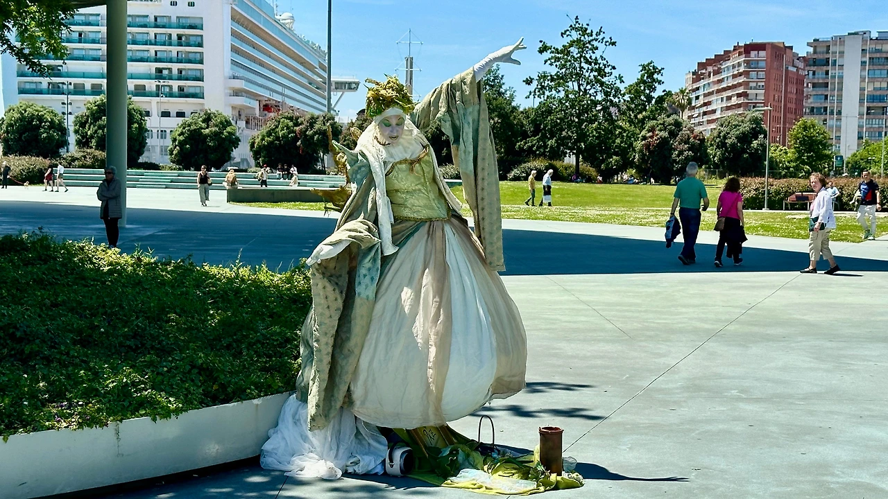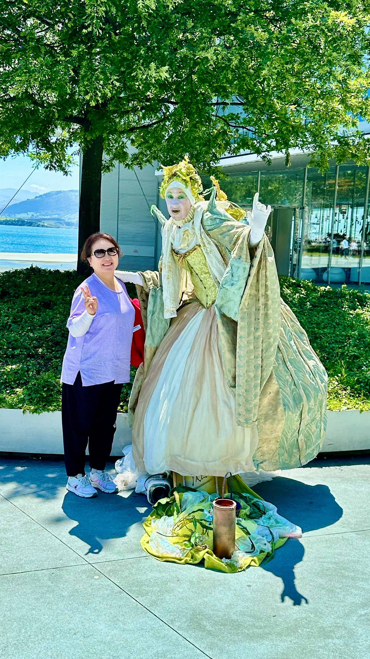 산책 중에 아내가 돈을 달라고 한다. 그런데 잔돈이 없다. 지폐를 한 장 달라고 한다. 5유로 지폐를 주었더니 조금 떨어진 곳에서 외롭게 요정 팬터마임을 하는 곳으로 간다. 그곳에 돈을 놓아주고 뭐라고 말을 한다. 조금 뒤에 사진을 찍어달라고 나를 부른다. 덕분에 눈치 안 보고 사진을 찍으니 다양하게 포즈를 잡아준다. 산책하고 돌아오는 길에는 안 보인다.
