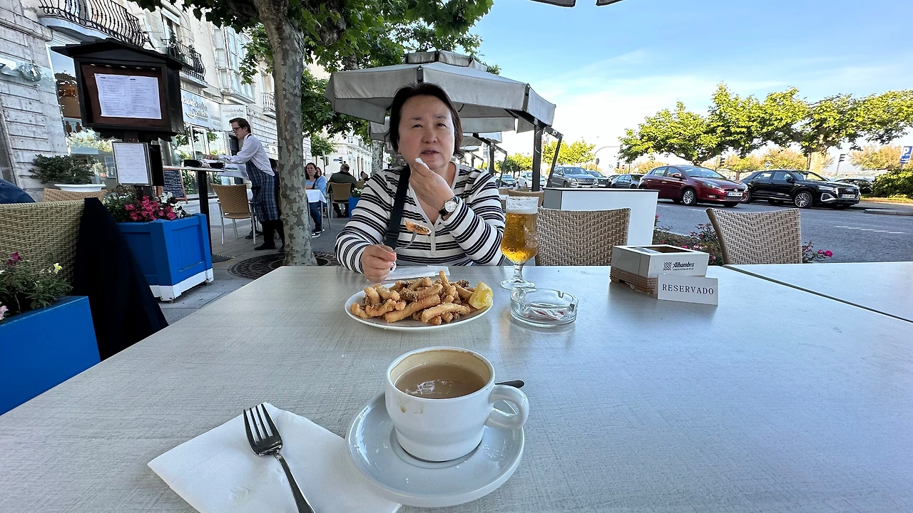 오후 8시가 되었는데도 밖이 환하다. 아내가 배가 고프다며 해변 가로 가서 뭐 좀 먹자고 한다. 긴팔 셔츠를 입고 내려갔는데 상당히 으슬으슬하다. 바람도 있다. 해변 가에는 식당들이 테라스를 즐비하게 만들어 영업을 하고 있다. 그중 한 곳에 들어가 맥주 한 잔에 오징어 튀김을 시켜 먹는다. 나는 알코올이 받지 않아서 아내만 마신다. 그런데 너무 추워서 테라스에 오래 앉아 있을 수가 없다. 대충 먹고 직접 카운터에 가서 지불하고 나온다. 스페인에서는 식당에서 먹고 지불하는 것도 일이다. 시간이 꽤 걸린다.