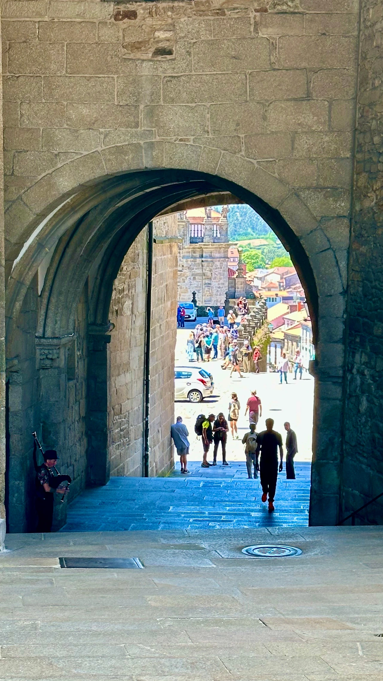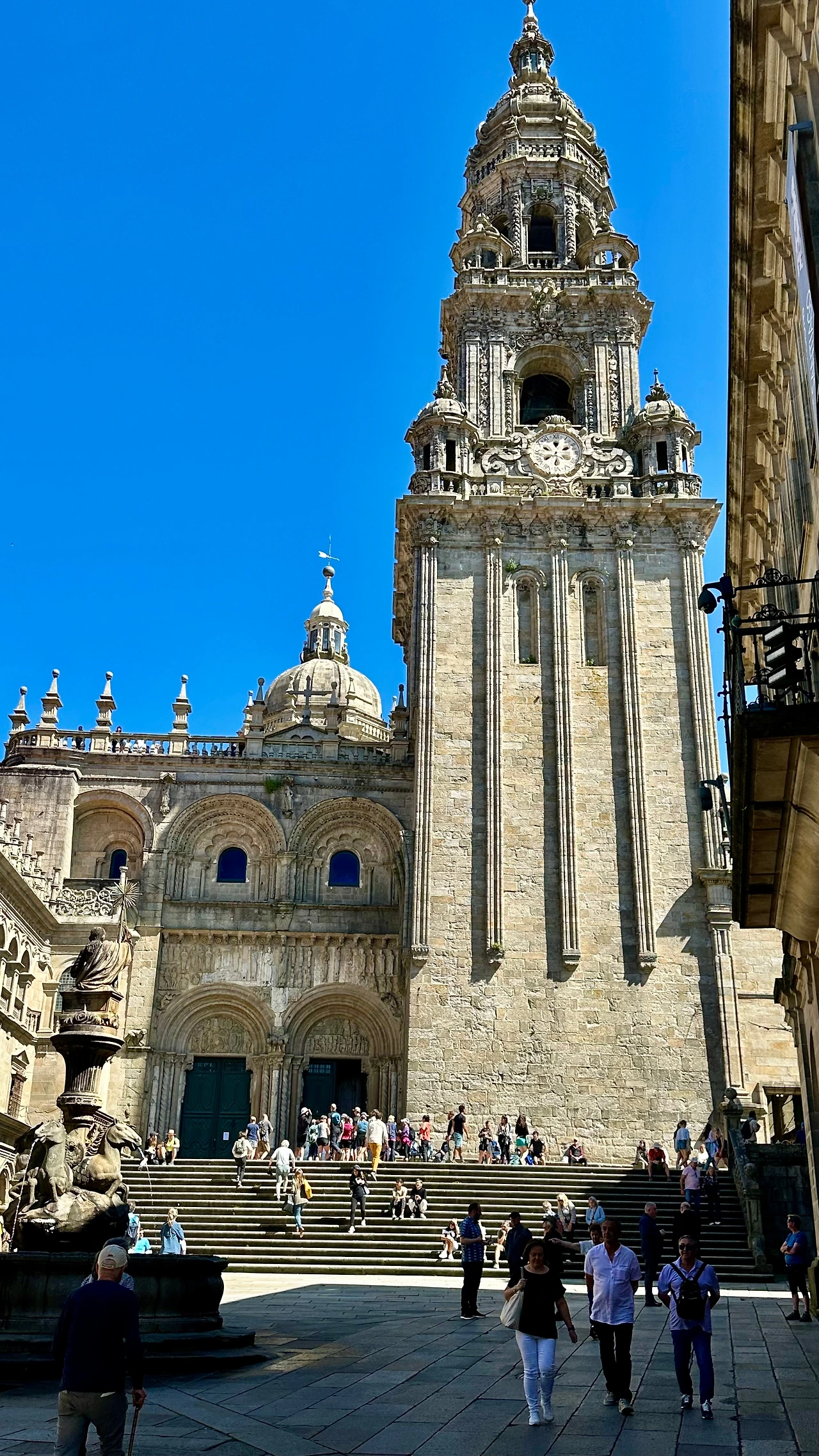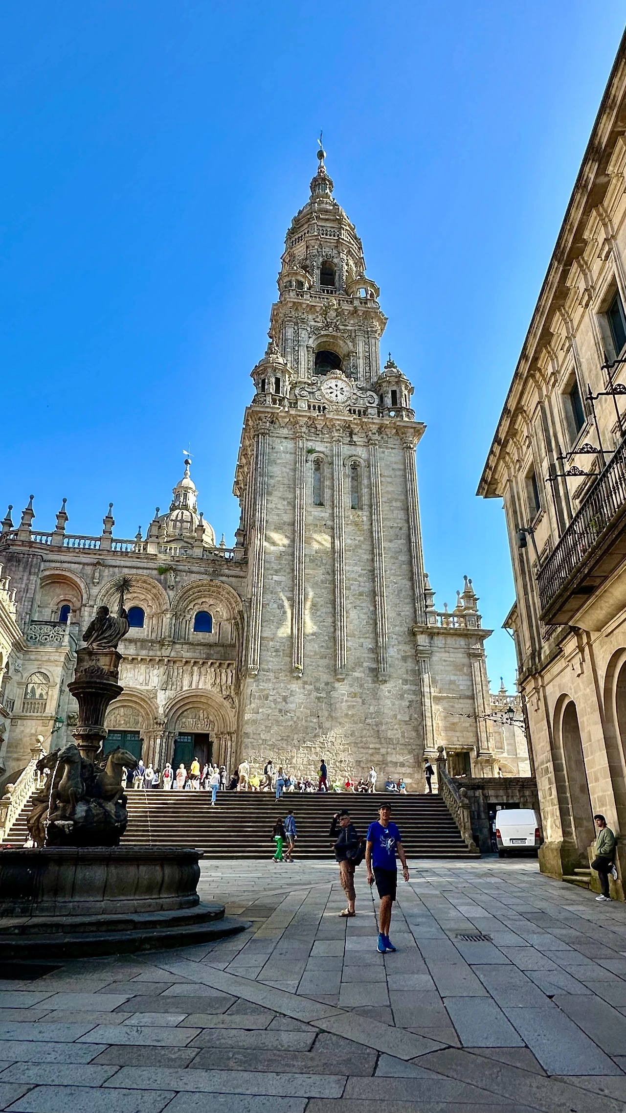 광장으로 나오니 산티아고 순례 길을 마친 순례자들이 광장 여기저기에 배낭을 옆에 두고 앉아서 성당을 쳐다보고 있는 모습들이 보인다. 그 먼 길을 돌아왔으니 감회가 깊을 것이다. 50대 초반 정도 되어 보이는 한국인 순례자도 우연하게 만나 인사했다. 얼굴이 까맣게 타고 반질반질하다. 올 때의 고생이 온몸에서 느껴진다.
